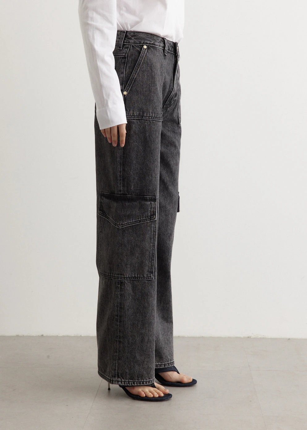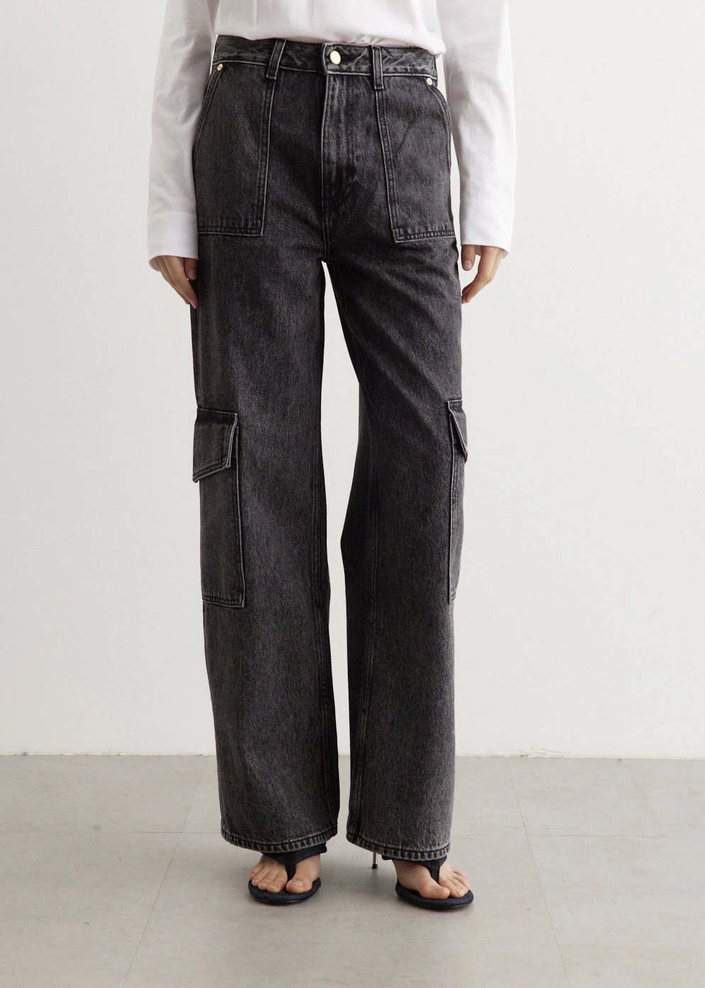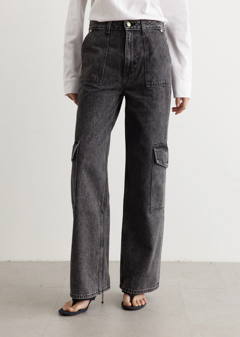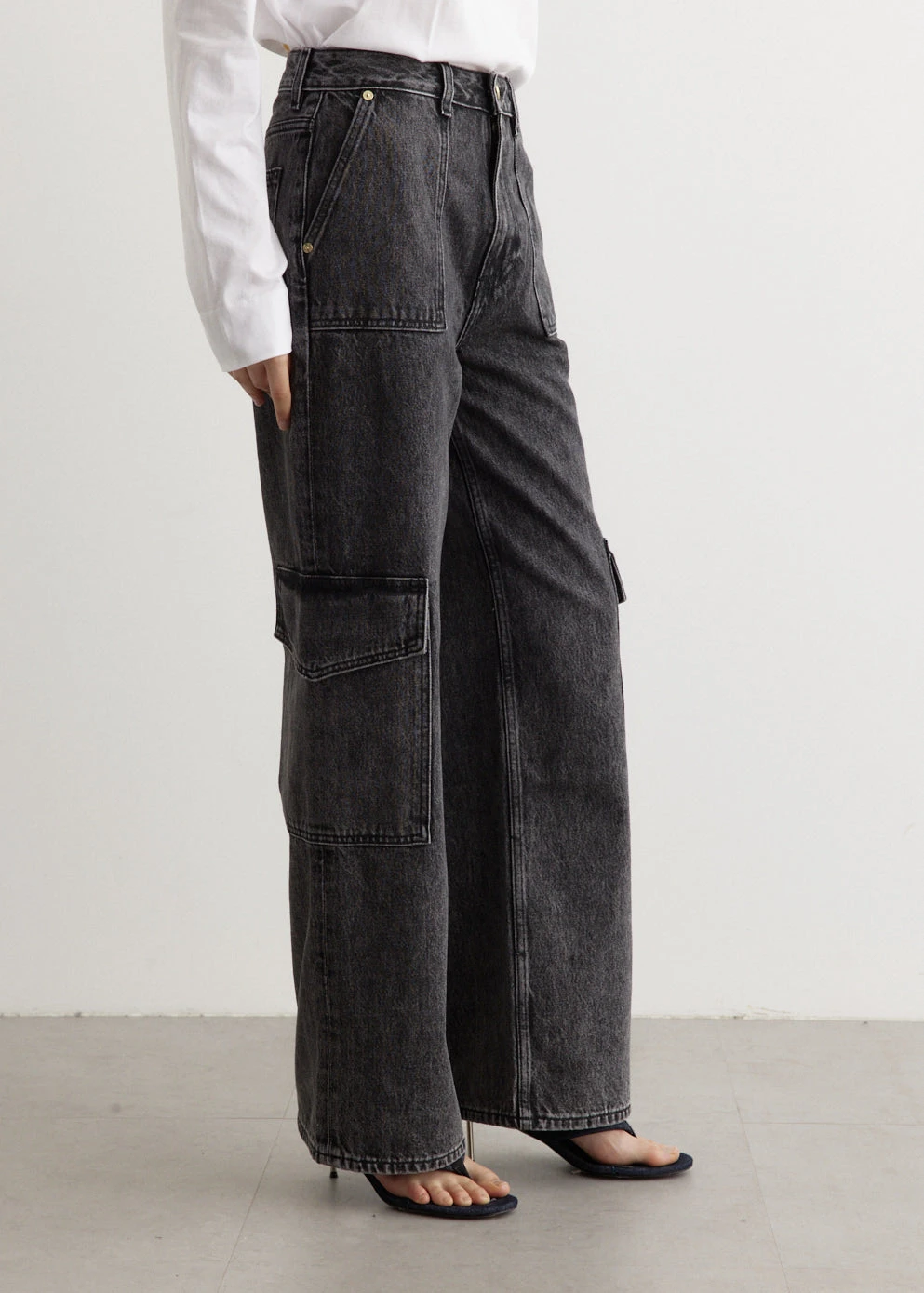 Danish label Ganni blends streetwear trends with a playful touch of humour through bold prints and colour palettes, voluminous silhouettes and easy-to-wear fabrics. Crafted from a rigid organic cotton fabric, the Ecru Denim Angi Jeans are cut to a wide, straight leg with a relaxed fit. It’s detailed with side cargo pockets for a classic utilitarian look.Â