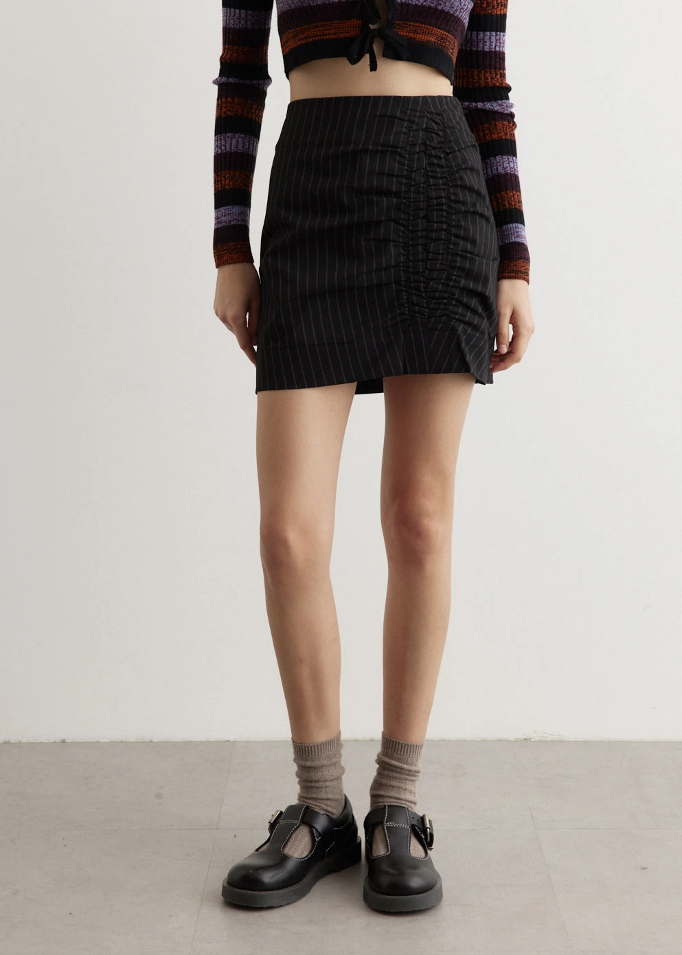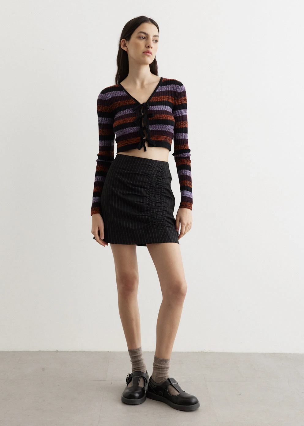 Danish label Ganni blends streetwear trends with a playful touch of humour through bold prints and colour palettes, voluminous silhouettes and easy-to-wear fabrics. The Stretch Stripe Mini Skirt a mini-length skirt that’s tailored to a slim fit.Â