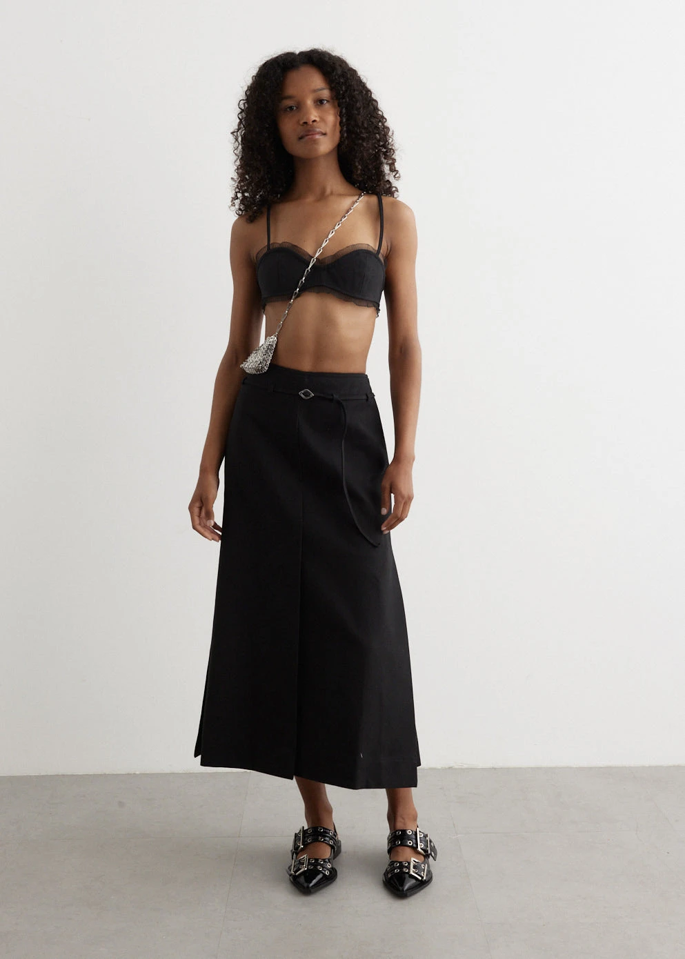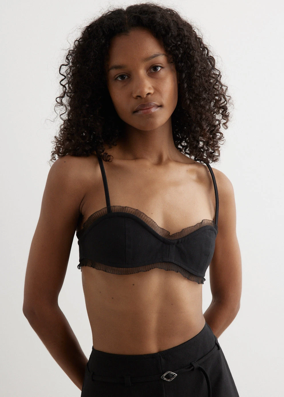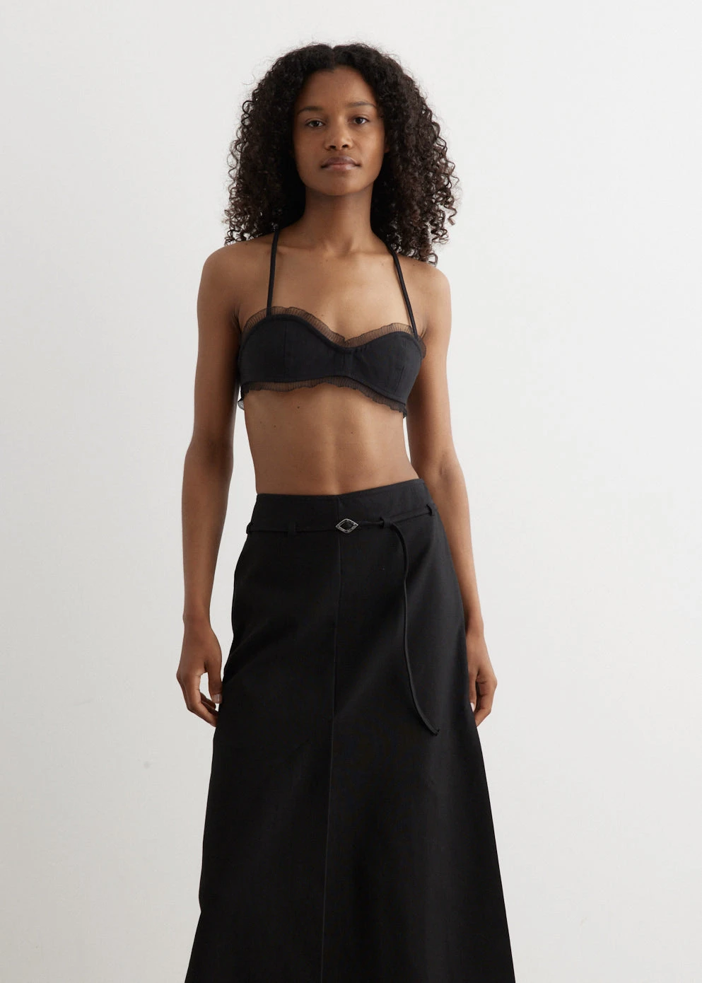 Danish label Ganni blends streetwear trends with a playful touch of humour through bold prints and colour palettes, voluminous silhouettes and easy-to-wear fabrics. Made from organic cotton, the Suiting Strap Top boasts a sweetheart-neckline and is adorned with lace detailing.Â