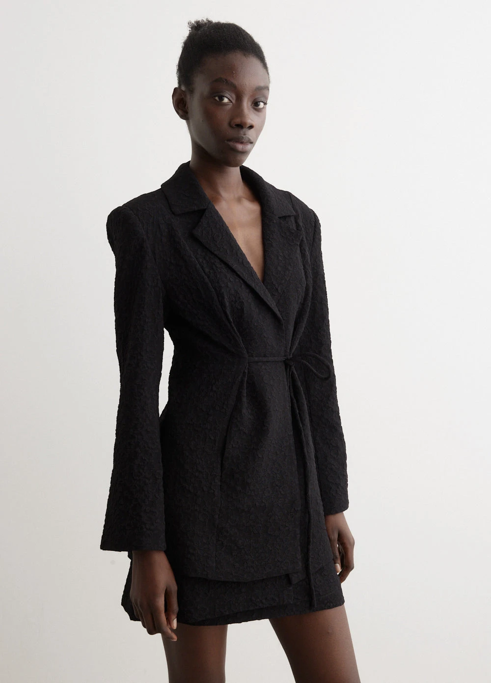Danish label Ganni blends streetwear trends with a playful touch of humour through bold prints and colour palettes, voluminous silhouettes and easy-to-wear fabrics. Crafted from a blend of recycled polyester, This Textured Suiting Tie String Blazer is designed for a regular fit. Adorned with a collared neckline, long sleeves and tie strings at the front and back.