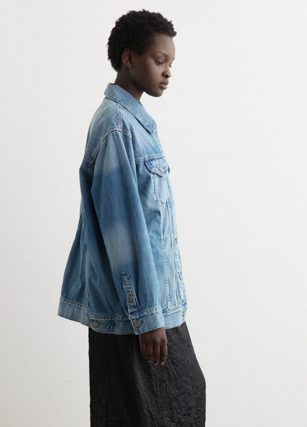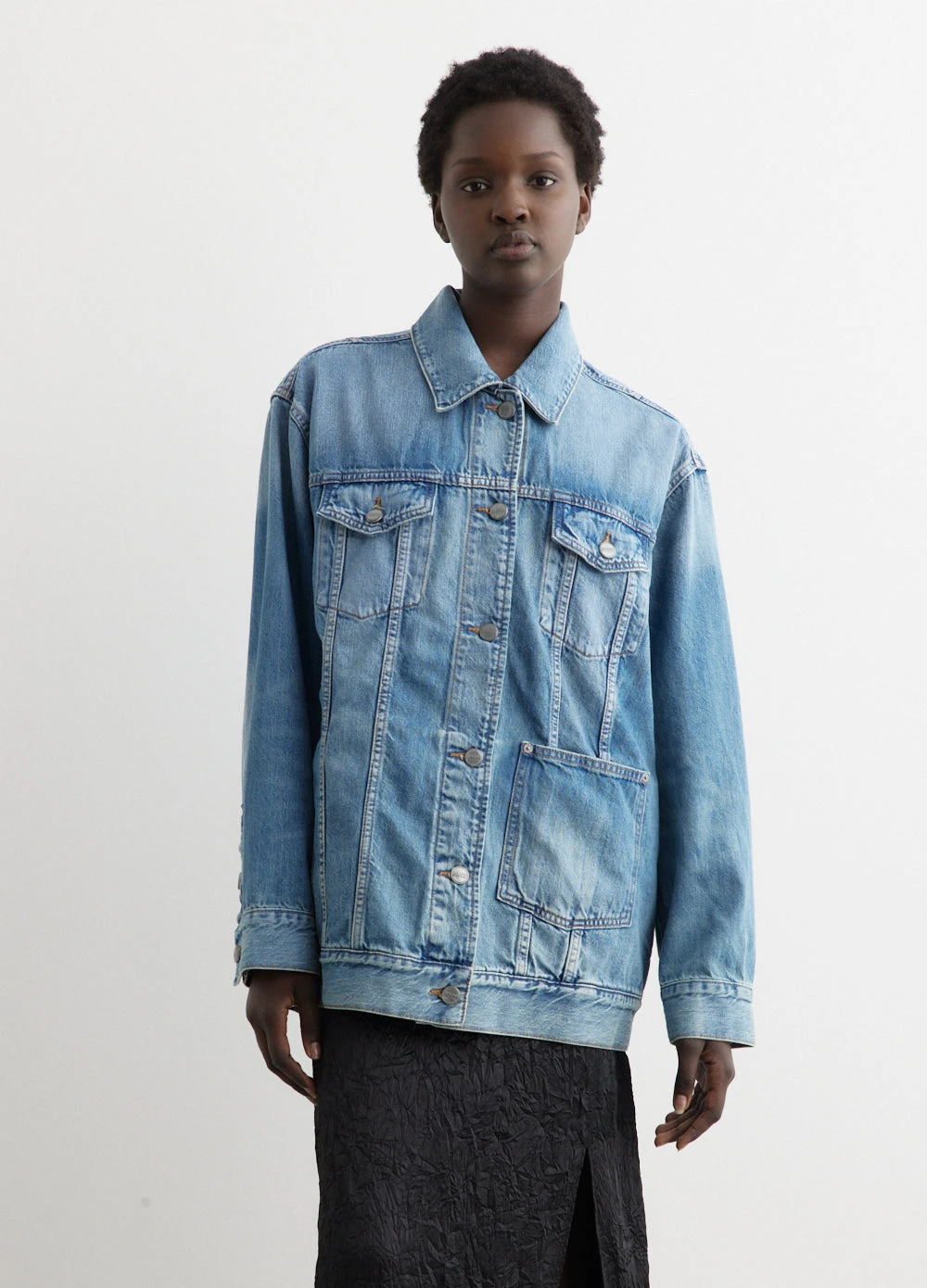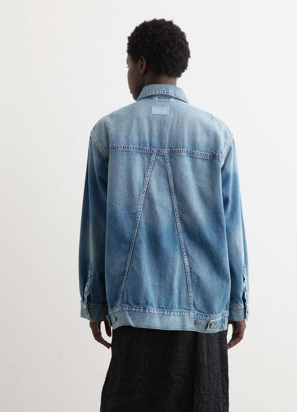 Danish label Ganni blends streetwear trends with a playful touch of humour through bold prints and colour palettes, voluminous silhouettes and easy-to-wear fabrics. Crafted from rigid denim, the Tint Denim Oversized Jacket boasts an oversized silhouette with multiple front pockets and adjustable hem tabs for a customisable fit.