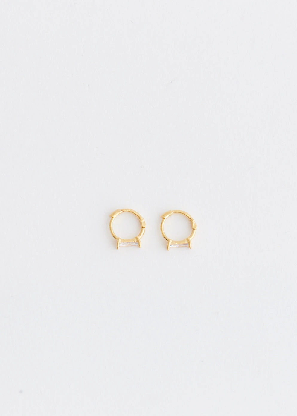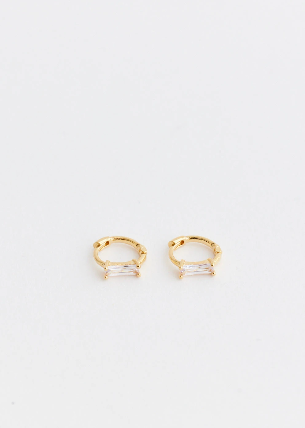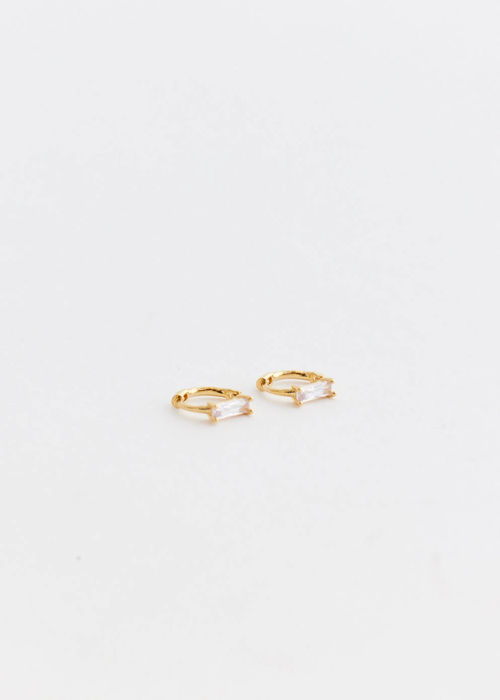 Curated to exude confidence and energy, Incu welcomes their ‘Incu Jewellery’ collection. Enhance your uniqueness with these vibrant and dynamic pieces for a timeless aesthetic. Crafted in 18k gold-plating, the Ghita Hoops have a hoop silhouette with a rectangular crystal embellishment.