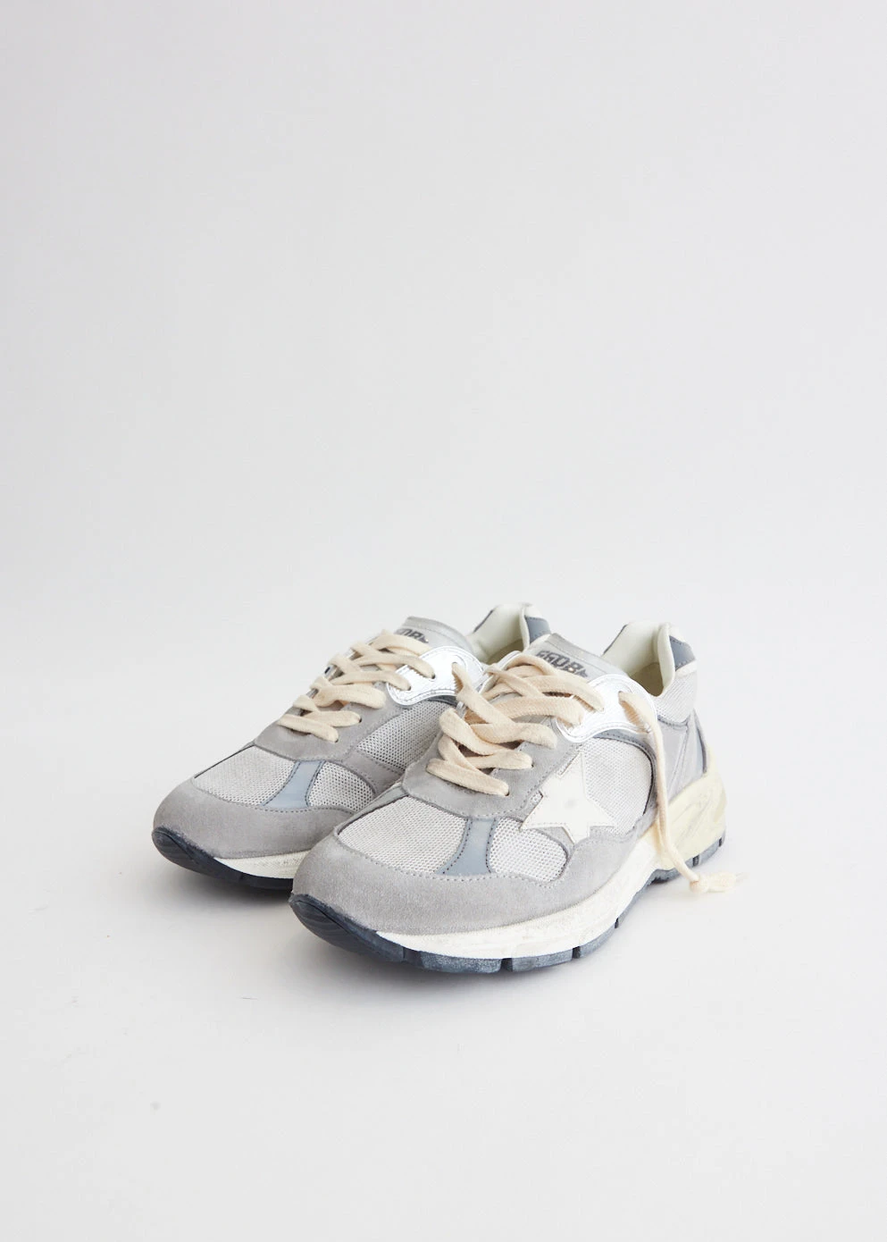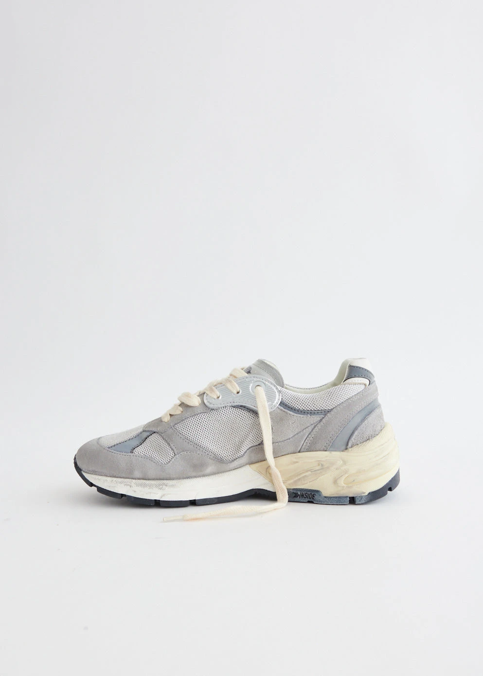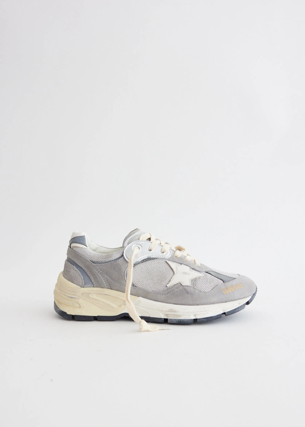 Founded in 2000 by an Italian husband and wife duo, Golden Goose utilises mix-matched patterns and interesting textures to compliment its signature worn-in style. The brand’s star motif charmingly adorns their shoes and garments alike. Made with a mesh and nappa leather upper, the Running Dad-Star Sneakers are a classic running shoe silhouette that boasts an ice-grey suede star, reflective fabric inserts, and sit atop a unique aged sole for an added touch of vintage charm.