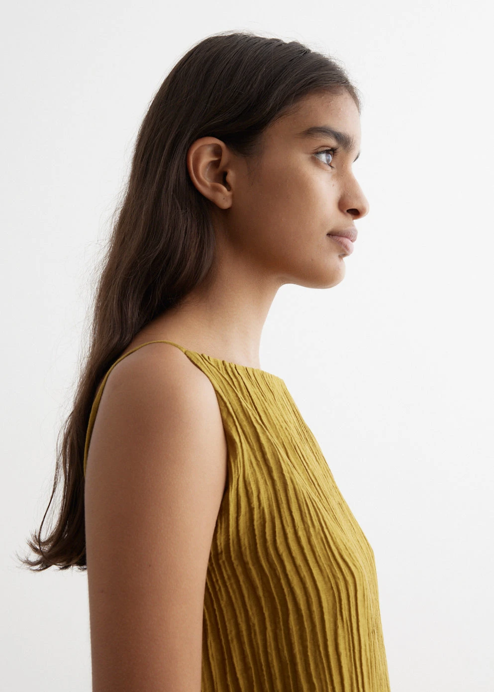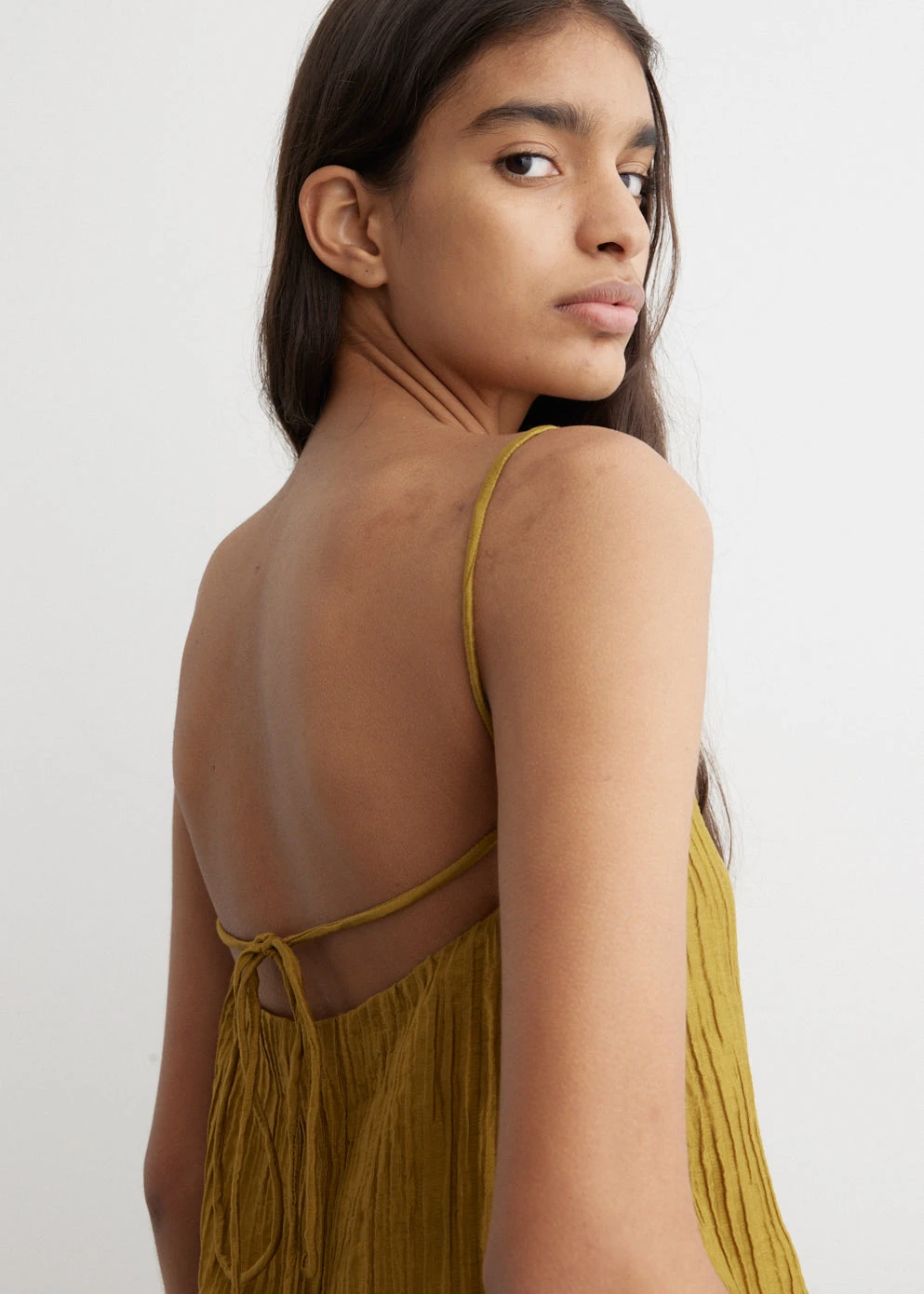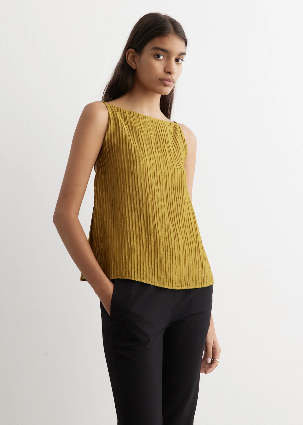 Incu Collection welcomes their Spring Summer 2023-2024 collection, drawing inspiration from the lasting influence of late 90’s grunge to evoke nostalgia in an approachable manner. Perspectives from contemporary sculptors bring a new dimension to reimagining textiles and colours. Crafted from a lyocell-nylon blend fabric with pleated detailing, the Grind Sleeveless Top has adjustable ties at the back.