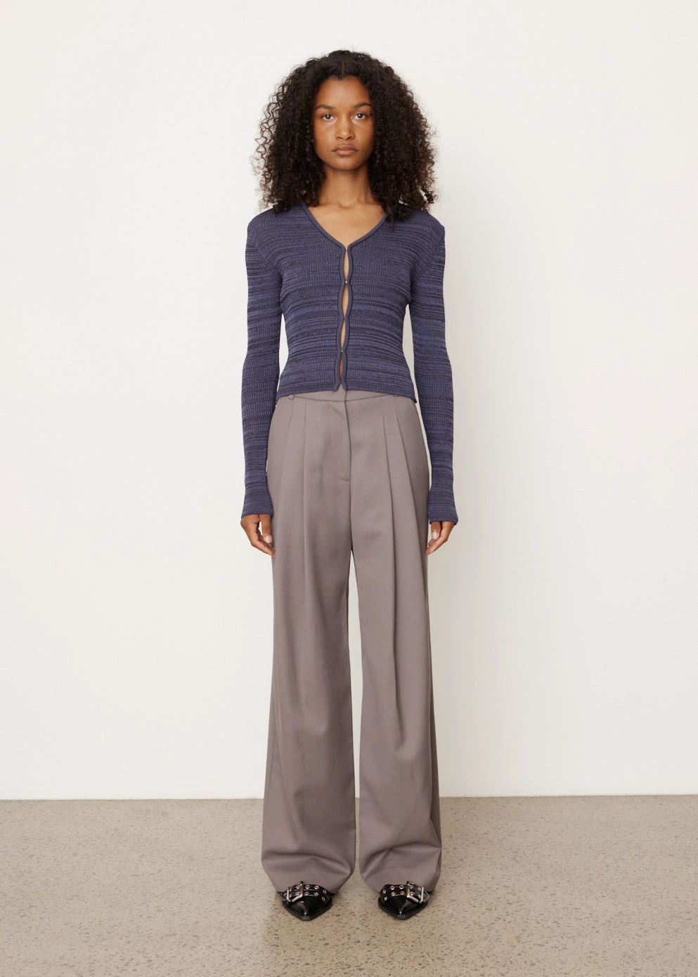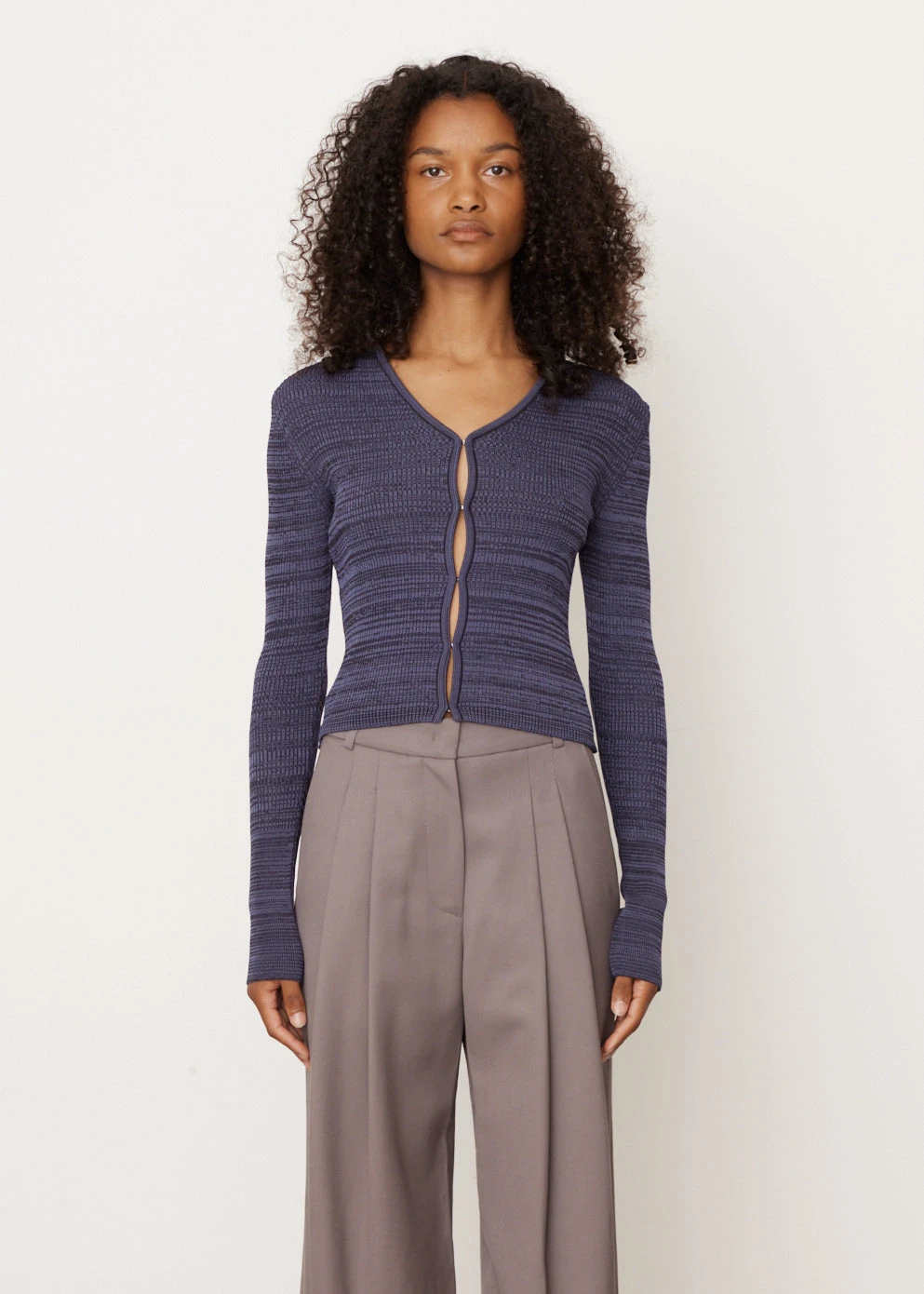 Birthed in Seoul, Low Classic’s philosophy revolves around beauty through simplicity and is delivered via updated, classic silhouettes. Made from a rayon-nylon blend fabric with a ribbed texture, the Hook Slim Cardigan is characterised by its hook-and-bar closure.