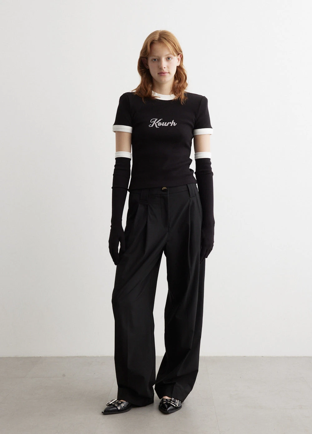 Kourh, a Sydney-based fashion label founded by designer Tarek Kourhani, breaks fashion norms by offering gender-neutral collections that combine sports casual and tailored elegance to encourage self-expression and inclusivity. The Icons Crop Tight T-Shirt features a crystal logo and detachable shoulder pads, paying homage to the styles of the 90s.