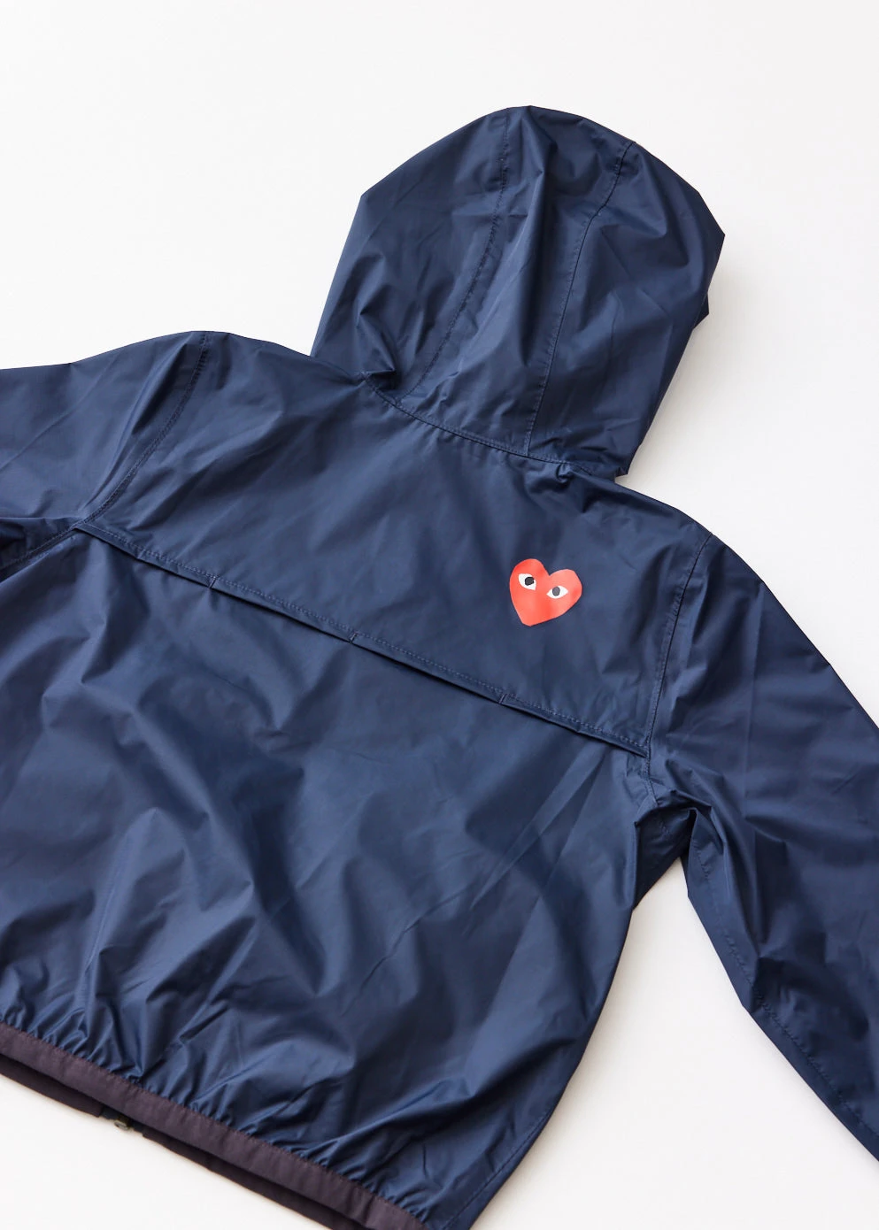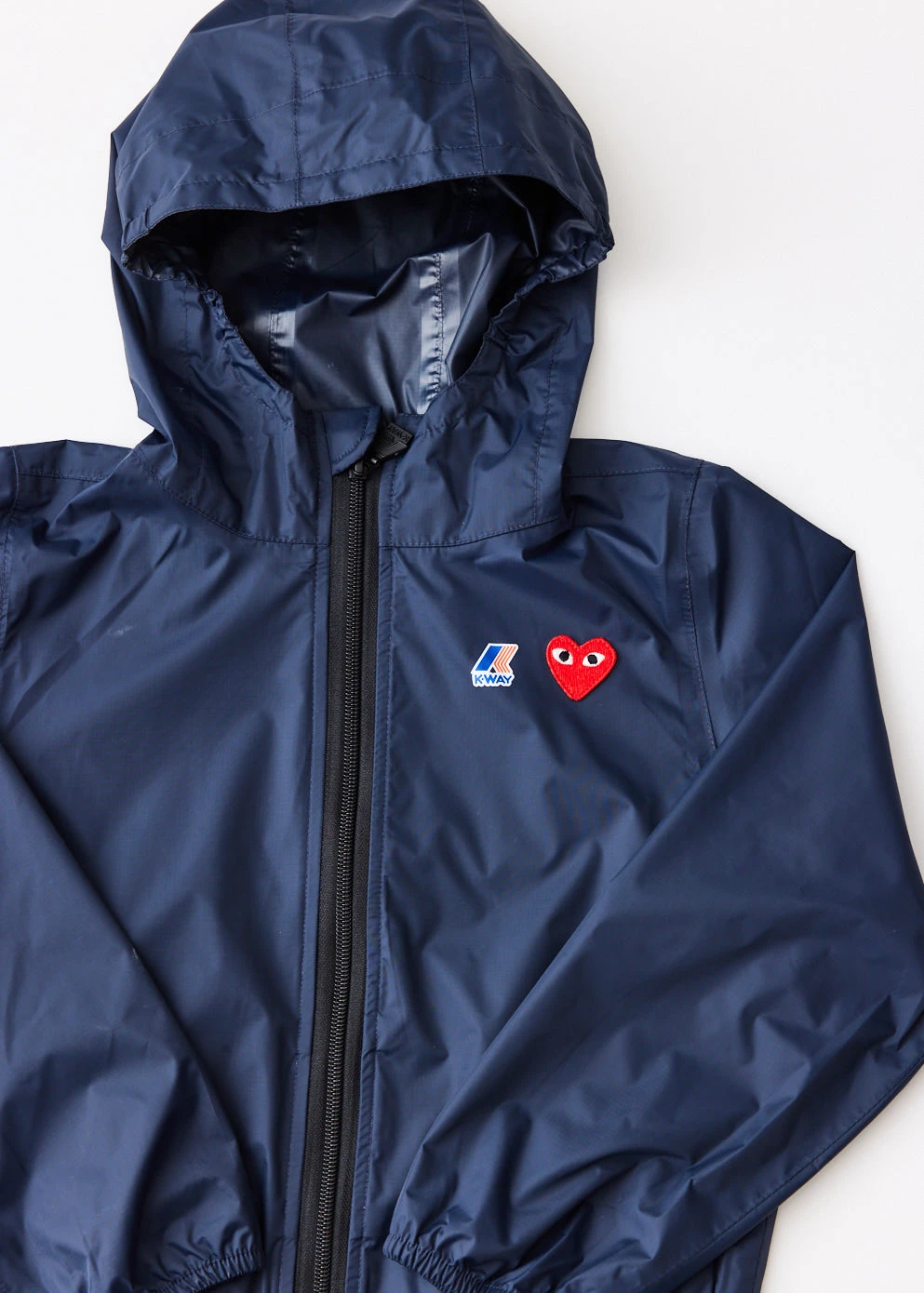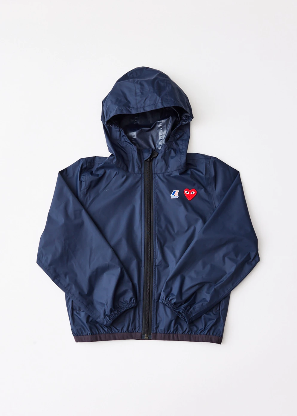 Comme des Garçons Play collaborates with French outerwear brand K-Way on this one-of-a-kind rendition of the brand’s most iconic rain jackets, the Leon Half Zip and Claude Full Zip. The J502 K-Way Kids Full Zip Parka is constructed of lightweight, water-resistant nylon and features the duo’s signature logos on the chest and back. Wear this versatile jacket in the rain, hail or shine.