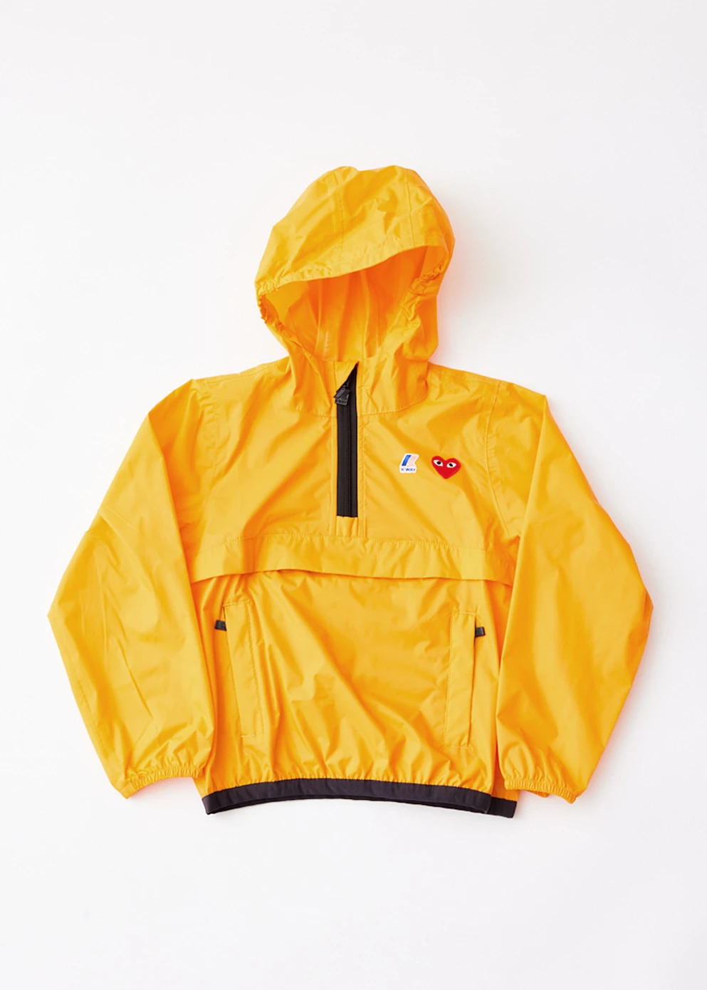 Comme des Garçons Play collaborates with French outerwear brand K-Way on this one-of-a-kind rendition of the brand’s most iconic rain jackets, the Leon Half Zip and Claude Full Zip. The J503 K-Way Kids Half Zip Parka is constructed of lightweight, water-resistant nylon and features the duo’s signature logos on the chest and back. Wear this versatile jacket in the rain, hail or shine.