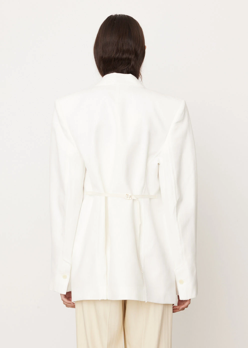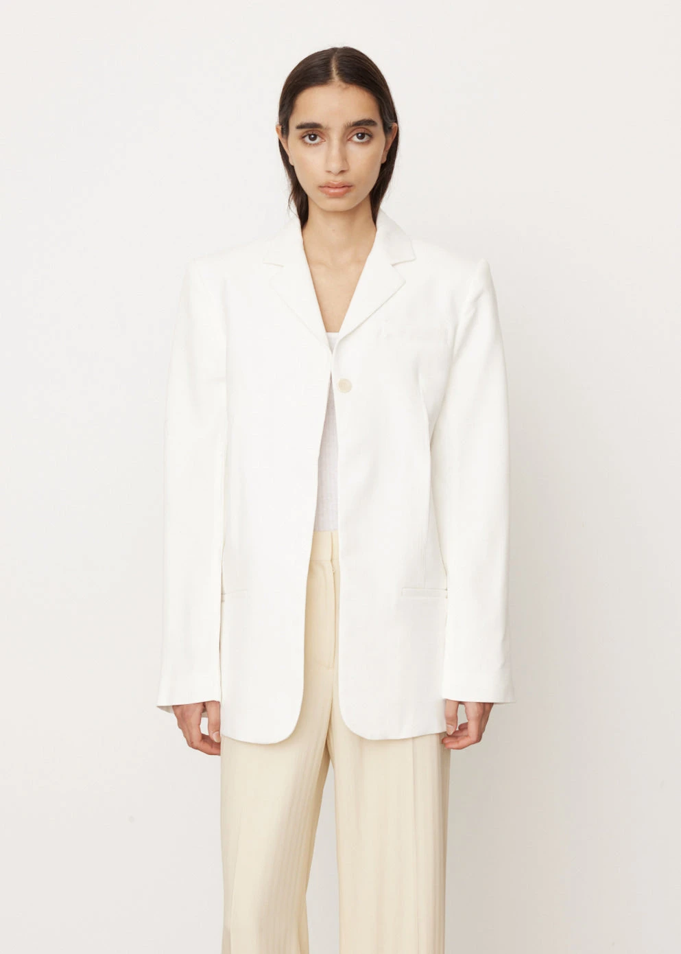Vivacious and modernist French fashion-house, Jacquemus, can be described as a phenomenon. The brand’s accessories and ready-to-wear collections are consistently awe-inducing season after season. Crafted from viscose blend, the La Veste Caraco Blazer is tailored to a fitted, structured shape. Adorned with aa notched lapel, inverted seams with layered piped finishings and gold hardware detailing.