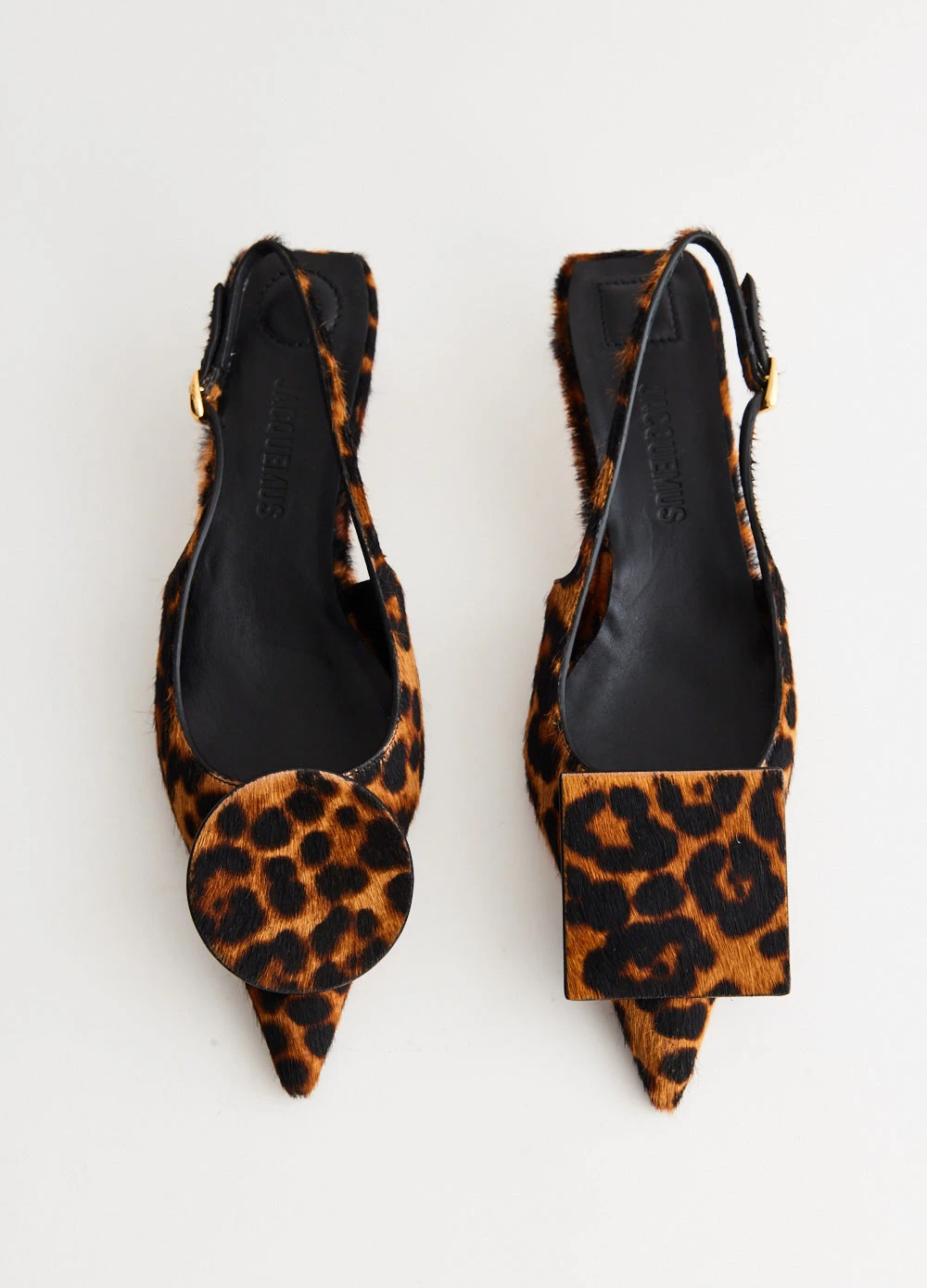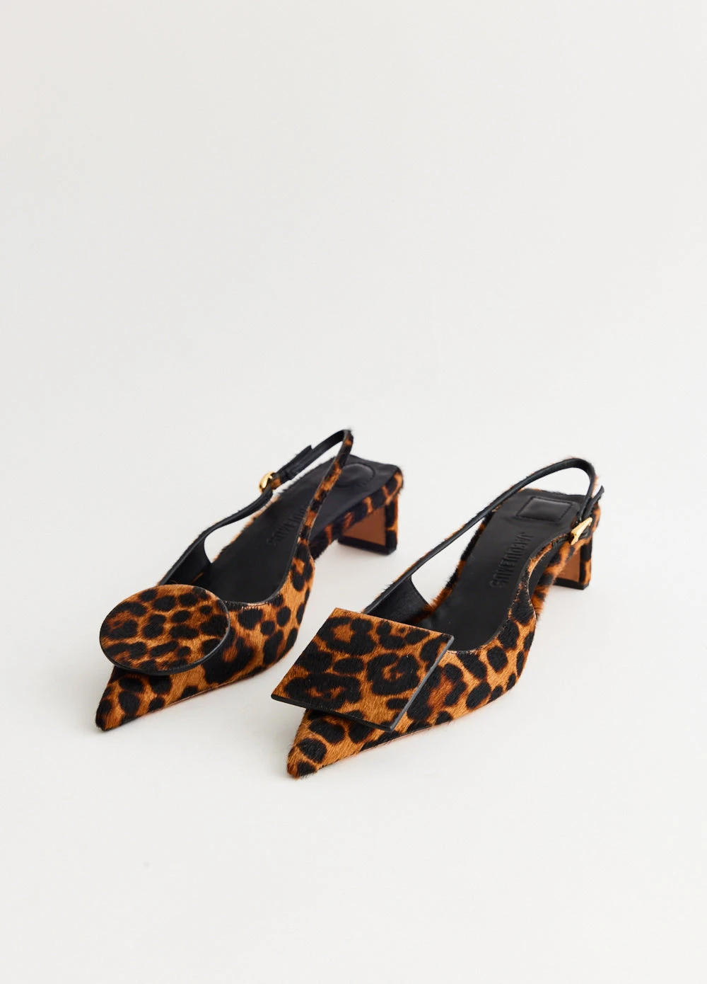 Vivacious and modernist French fashion-house, Jacquemus, can be described as a phenomenon. The brand’s accessories and ready-to-wear collections are consistently awe-inducing season after season. The Les Slingbacks Duelo Heels are effortlessly chic, featuring slingback detailing with leather lining with a pointed toe.Â