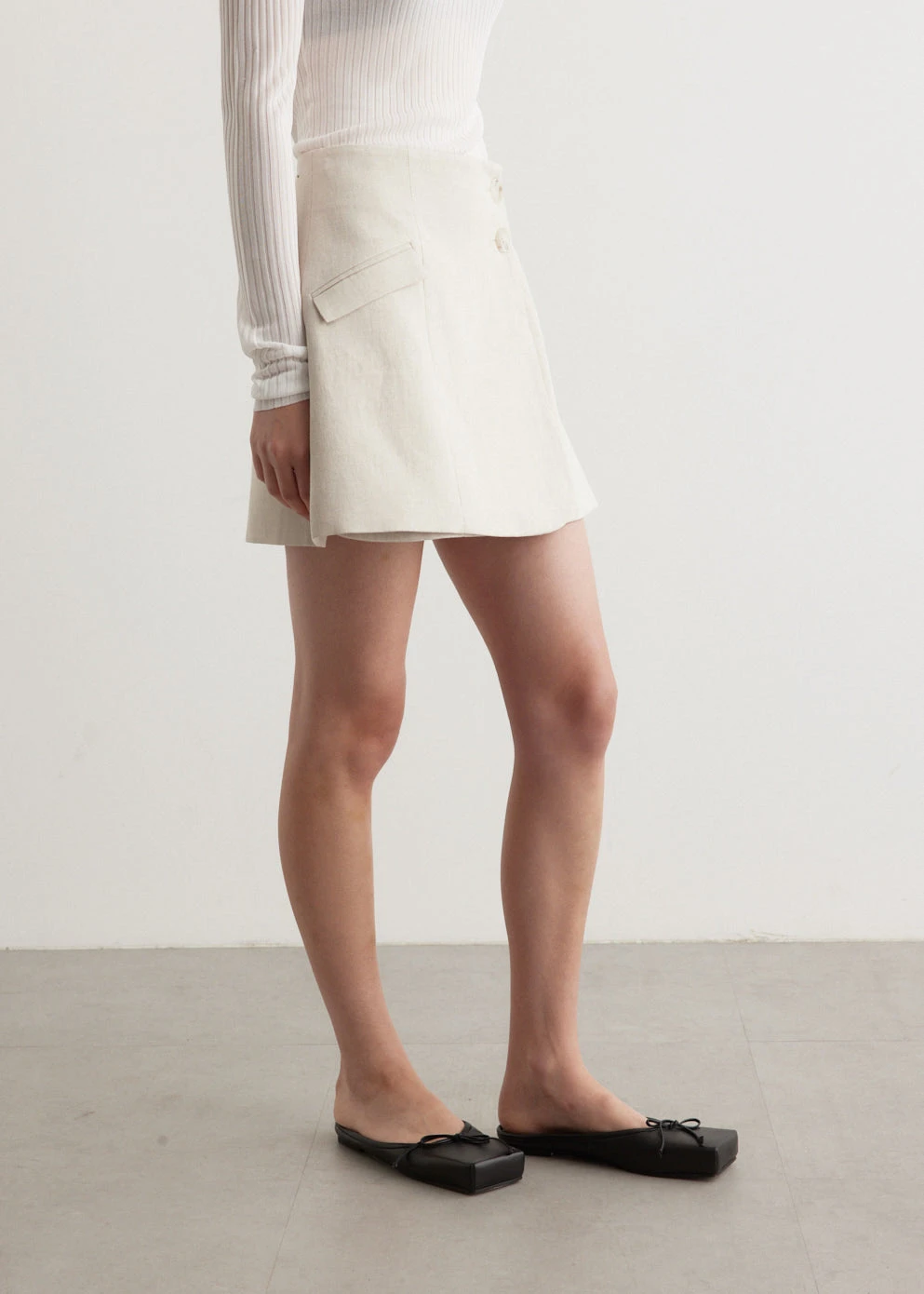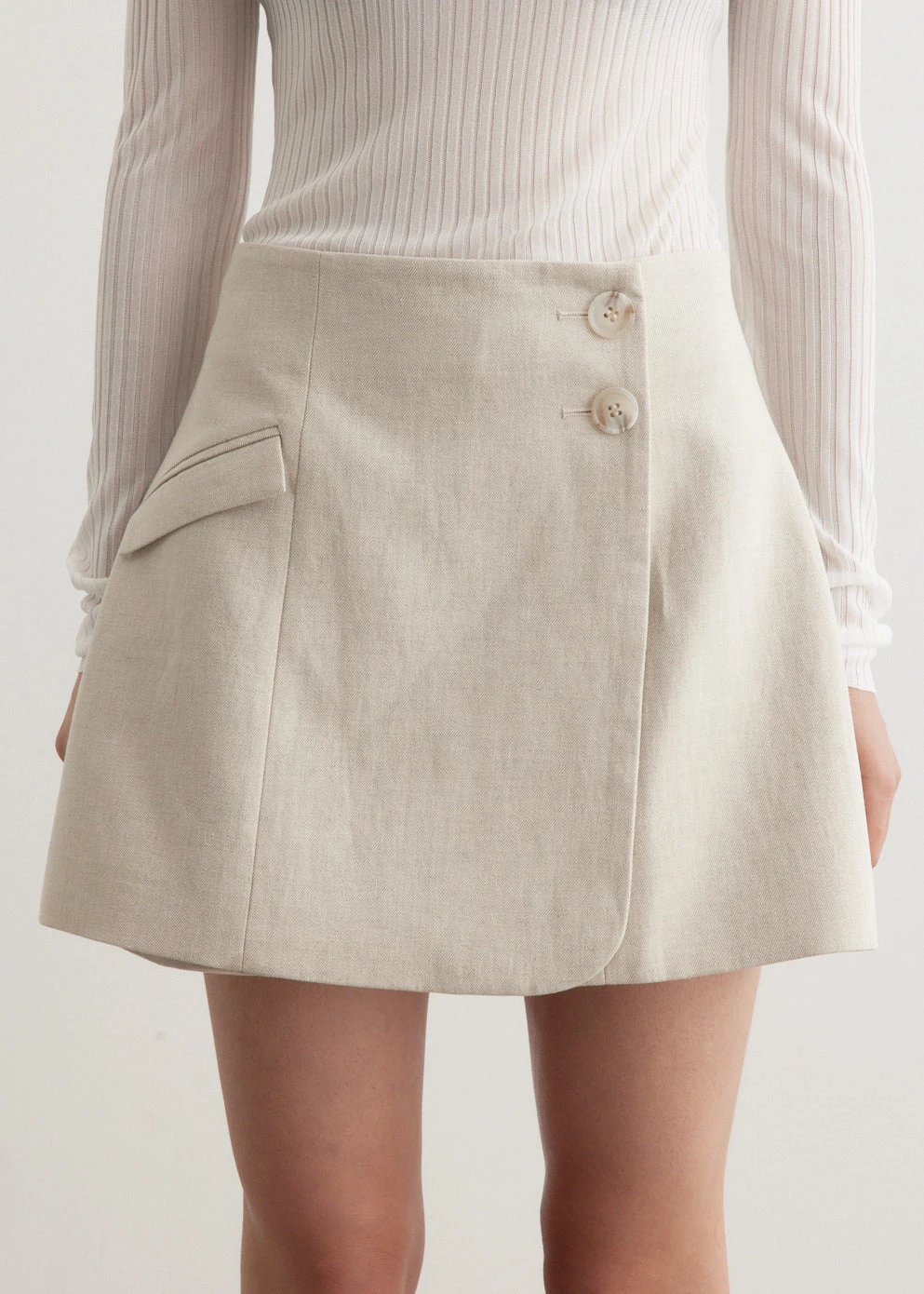Founded by Austraian designer, Anna Hoang in 2013, the label captures the beauty of minimalism by designing contemporary, timeless silhouettes and wardrobe staples. The Jenna Skirt offers a chic, tailored style. Made from a cotton-linen blend, this skirt boasts a refined design with its high-waisted shape and a flap pocket, complemented by a dual button closure for a sophisticated finish.