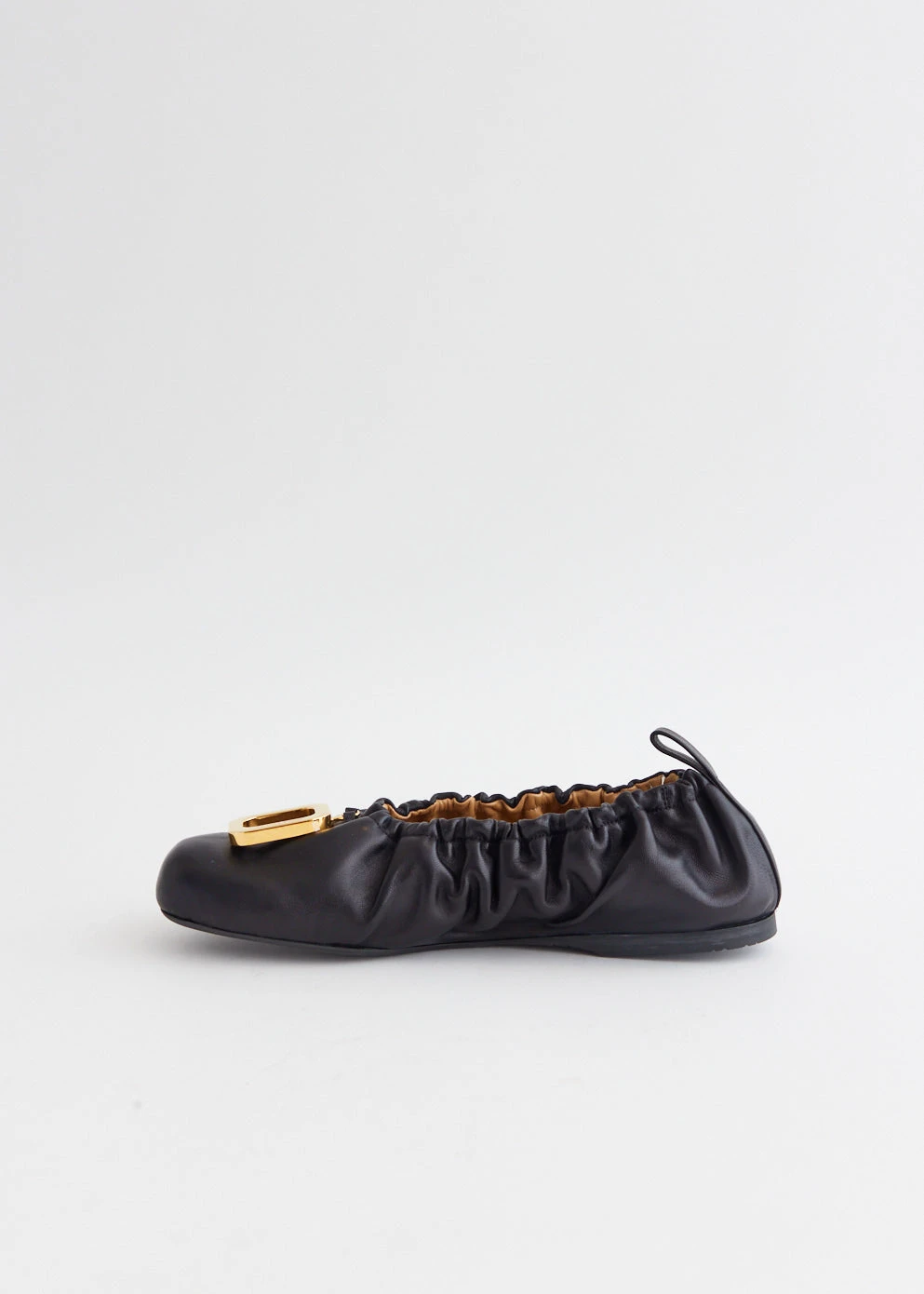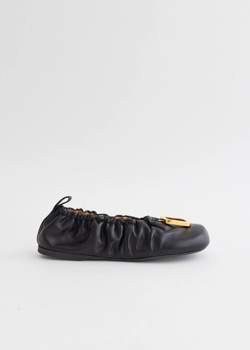 Heavily influenced by the British countryside and pop culture, JW Anderson blends luxury with casual charm using unexpected and bold palettes. The JWA Ballerinas feature a circular toe and stretchy ankles adorned with a logo-engraved gold-tone charm on the front.Â