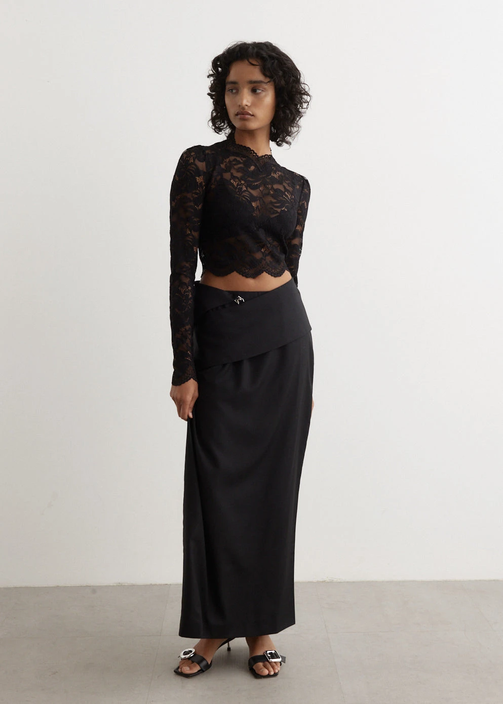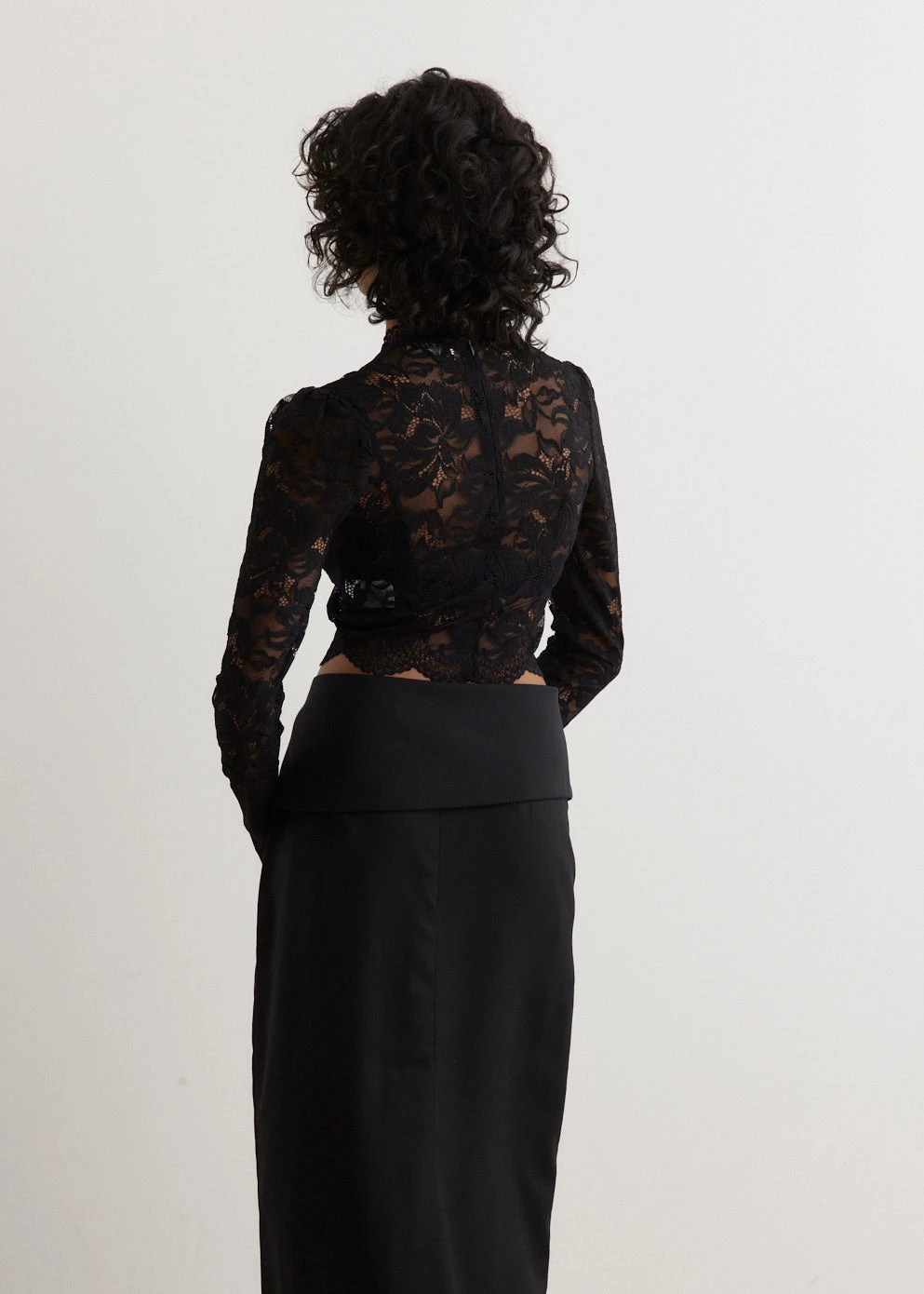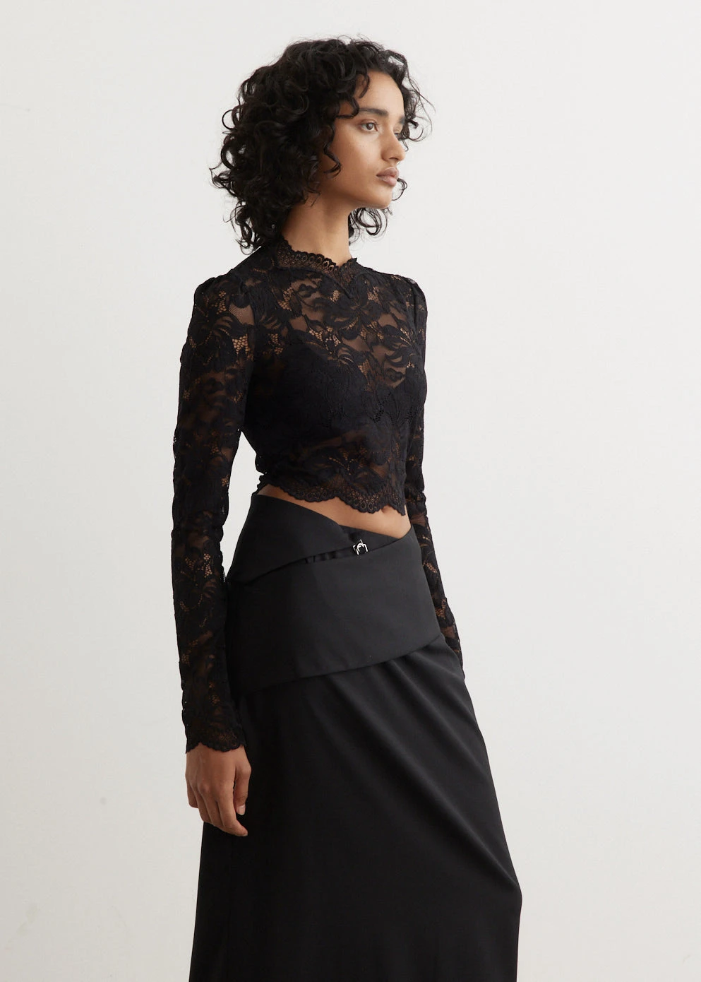 Rabanne is a Spanish brand that has always innovated, creating novelty to provoke the strongest of emotions. Starting as a couture house in 1966, from its inception, the house experimented with futuristic creations of metal rectangles, disks and chains. Made from delicate mesh lace, the Lace Top is a refined long-sleeve top with a cropped length and slim fit.Â