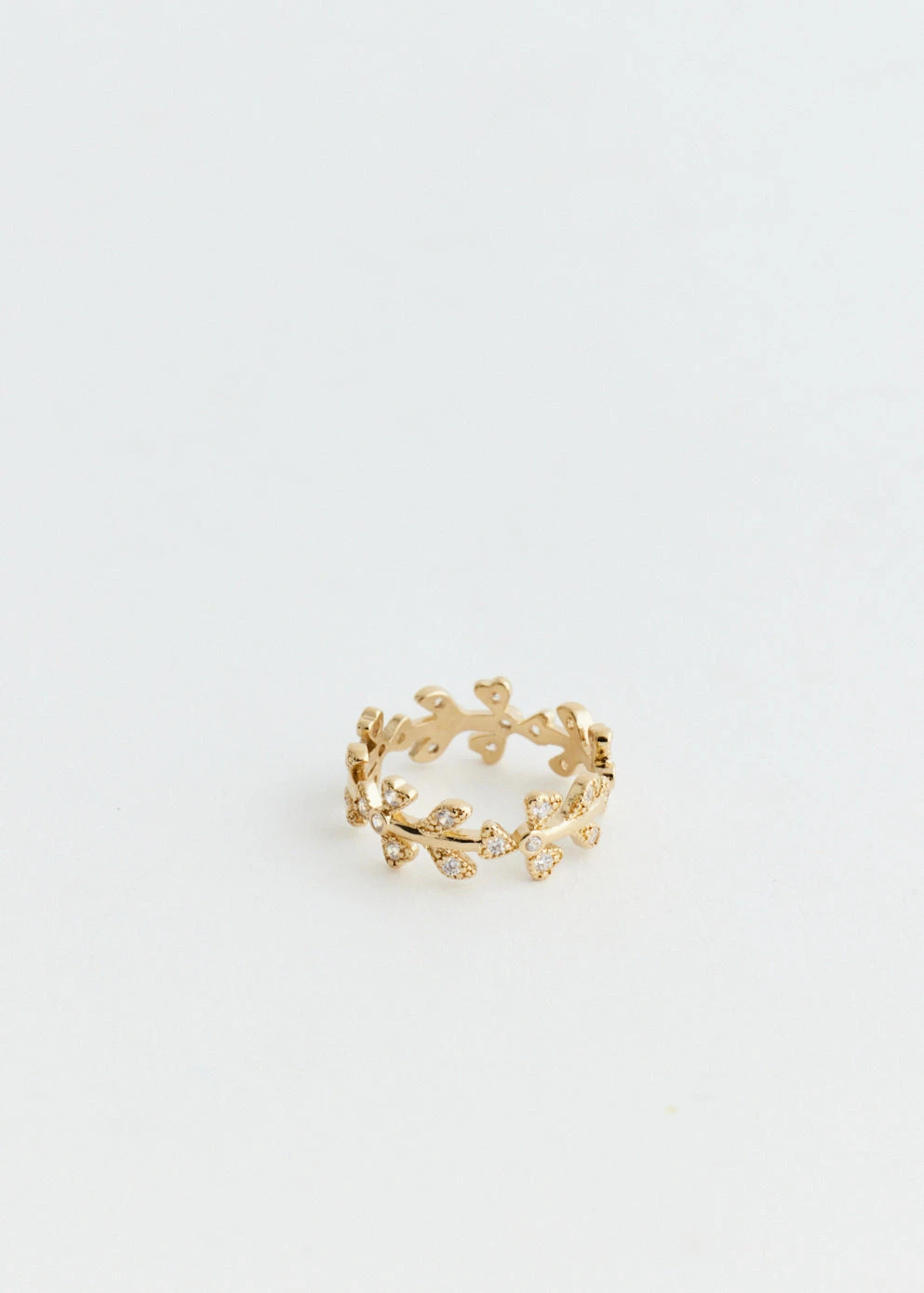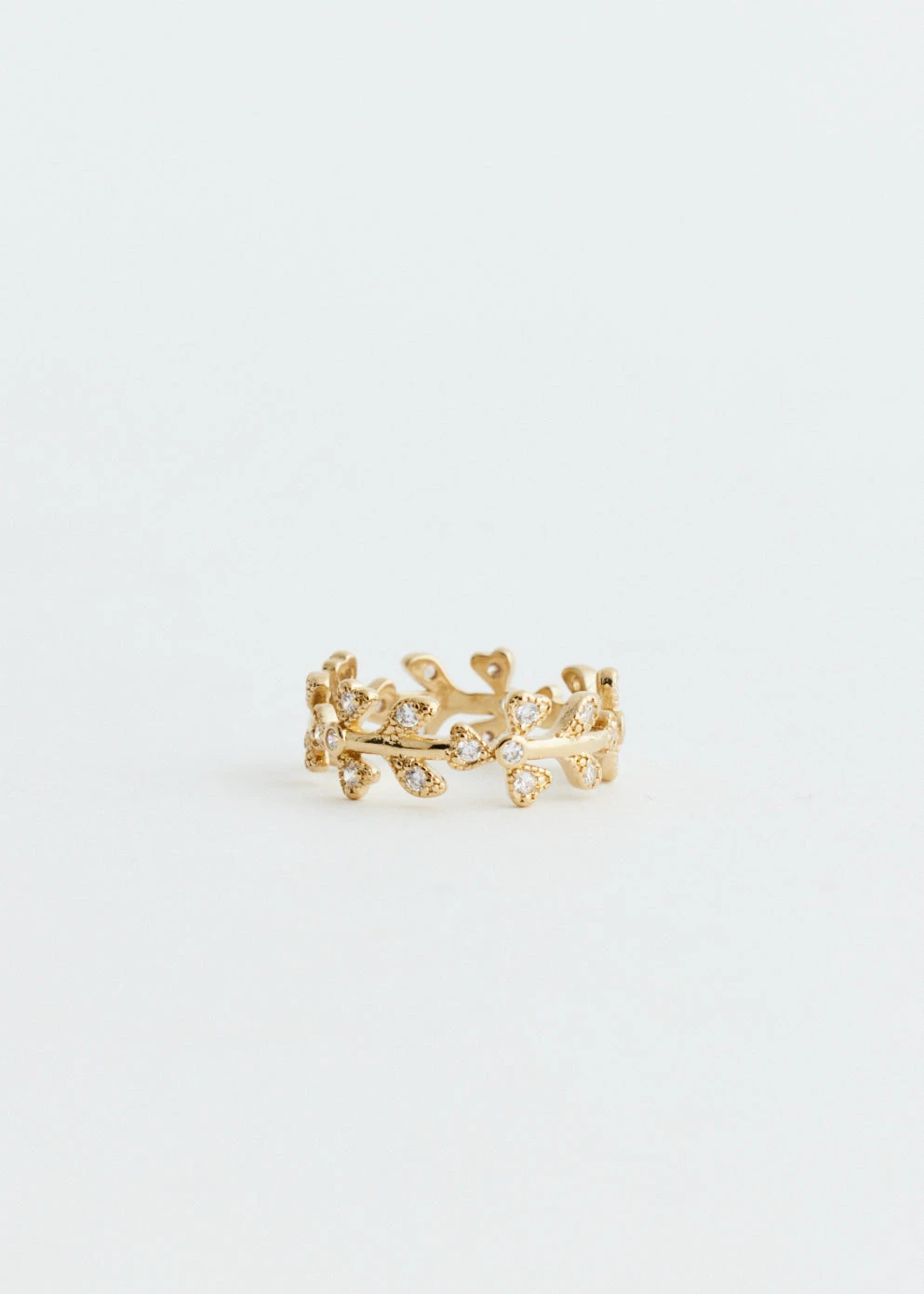 Curated to exude confidence and energy, Incu welcomes their ‘Incu Jewellery’ collection. Enhance your uniqueness with these vibrant and dynamic pieces for a timeless aesthetic. Crafted in 18k gold-plating, the Leaf Ring is an elevated design with its zircon crystal-embellished leaflets.