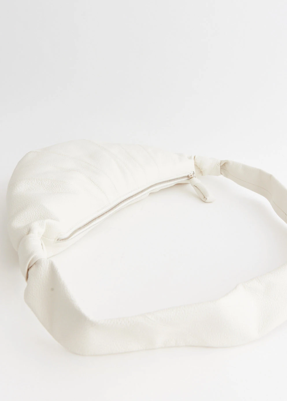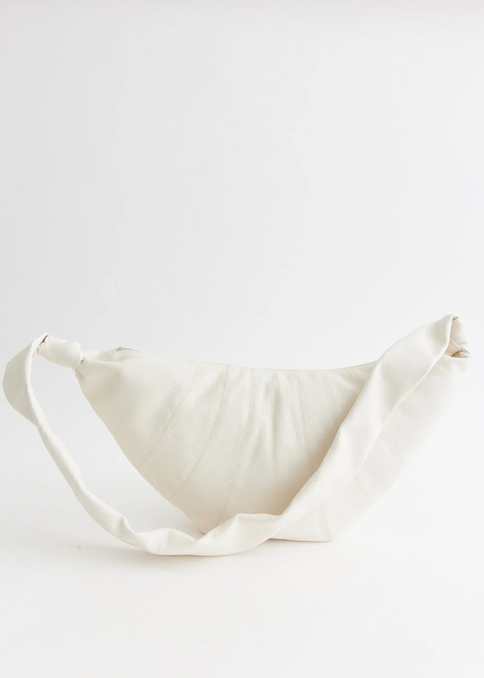 Helmed by Christopher Lemaire and Sarah-Linh Tran, the Lemaire brand offers timeless Parisian style that is sophisticated, inclusive and rich in cultural influence. The Medium Croissant Bag is inspired by the form of a croissant through an assembly of top stitched cut outs. Crafted from soft grained. leather, it’s designed to be worn as a crossbody or on the shoulder.Â
