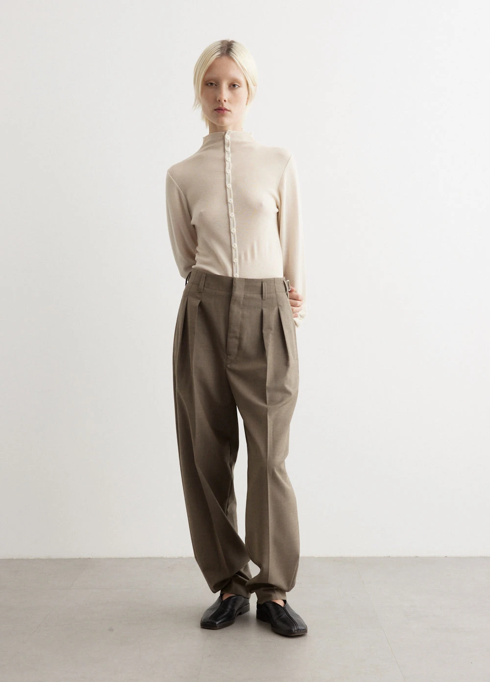 Helmed by Christopher Lemaire and Sarah-Linh Tran, the Lemaire brand offers timeless Parisian style that is sophisticated, inclusive and rich in cultural influence. Woven from a polyester-wool blend, the Pleated Tapered Pants offer a tapered silhouette that sits high on the waist. It features front pleats and buckled tabs on the waistband for a customisable fit.