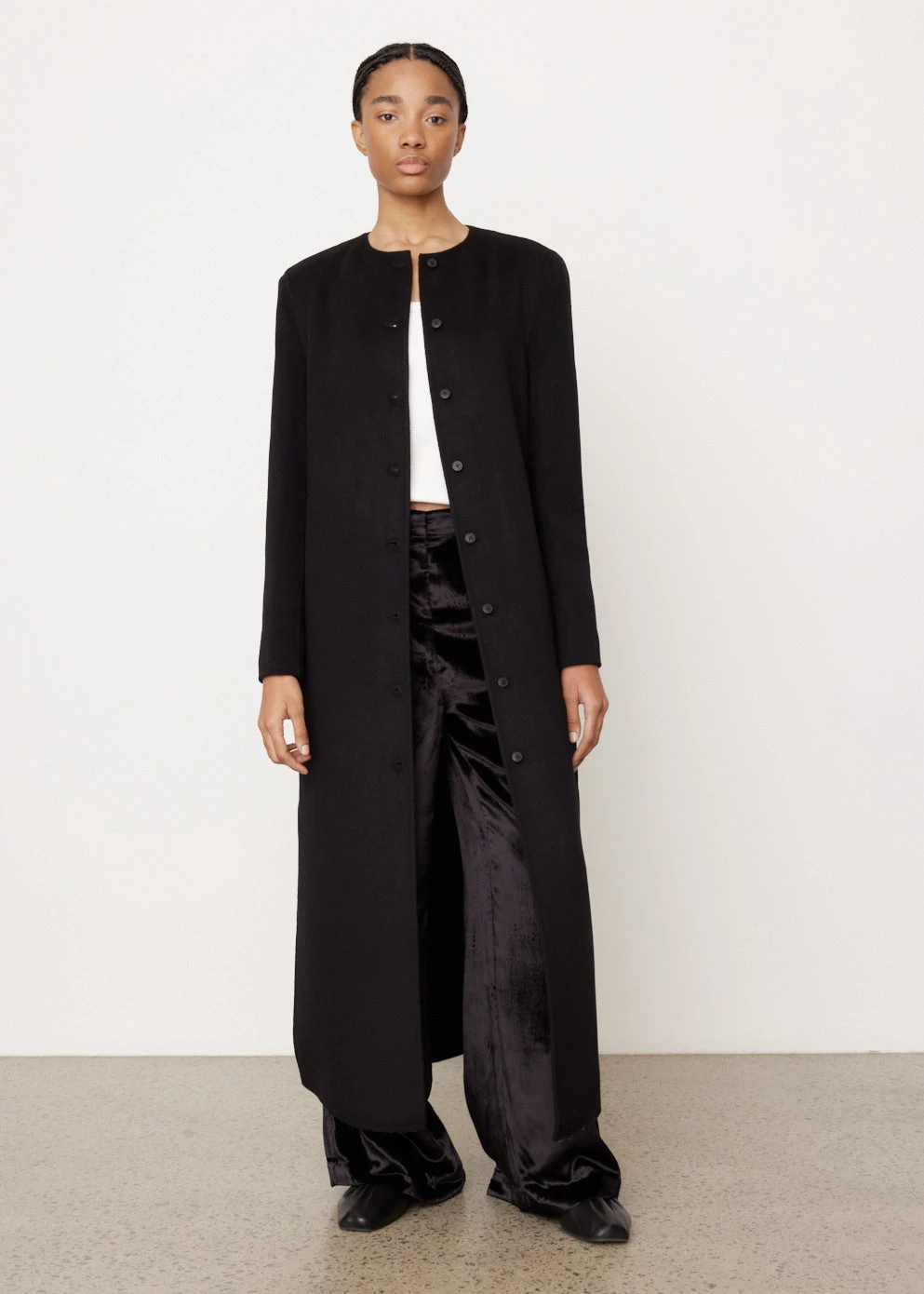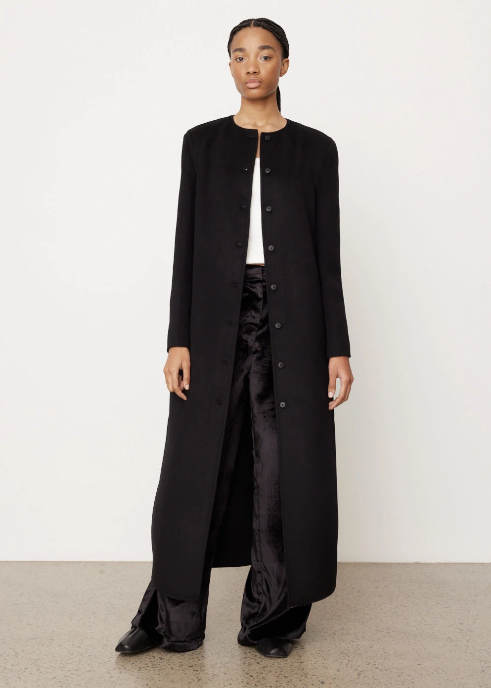Founded by Parisian influencer Chloé Harrouche, LOULOU STUDIO has a repertoire that consists of classic silhouettes and distinguished fabrics. The collections are full of soft neutrals and careful tailoring. Made from a soft Cashmere, the Long Wool Cashmere Coat features a button down closure, two front pockets and long sleeves.