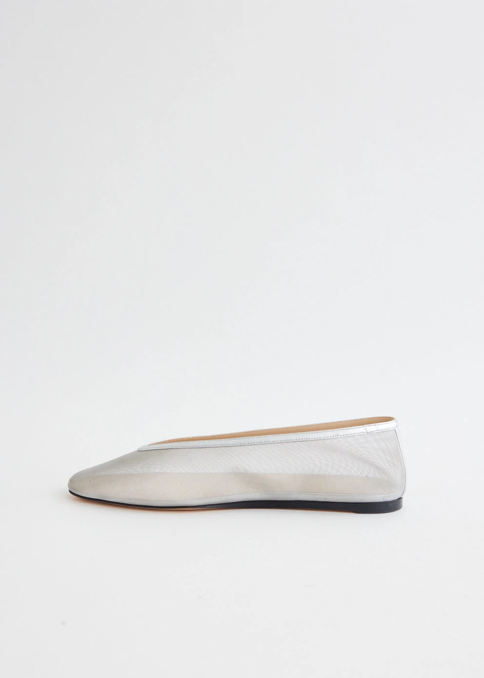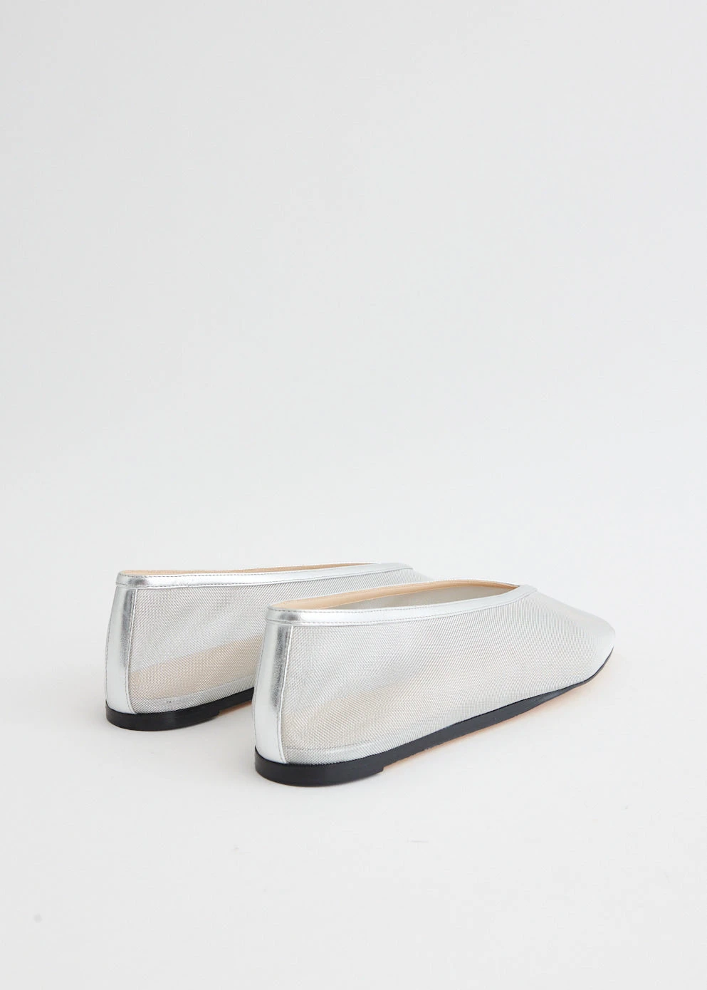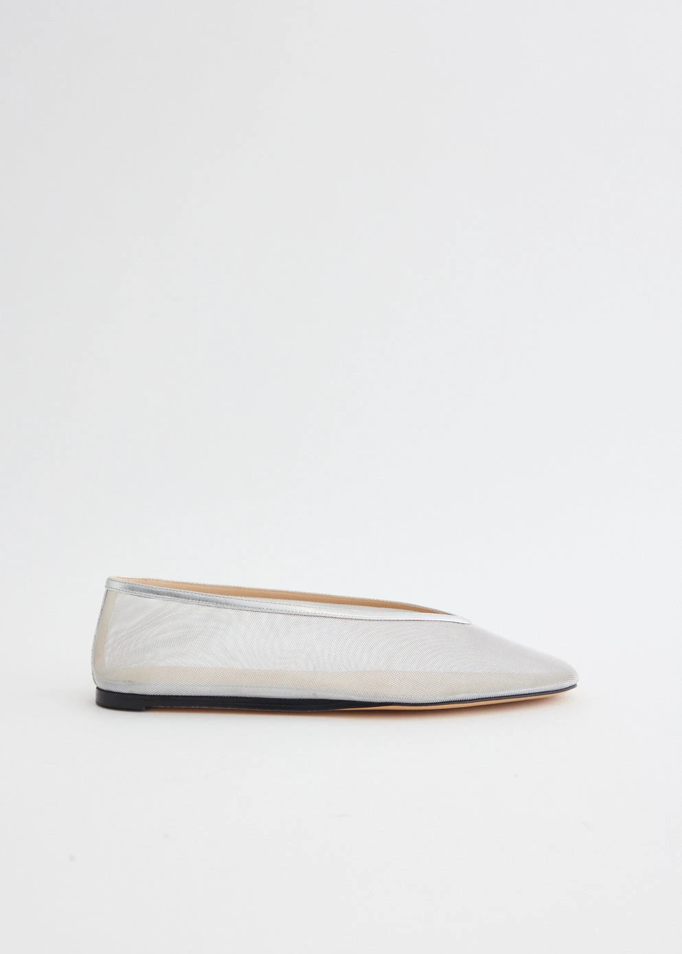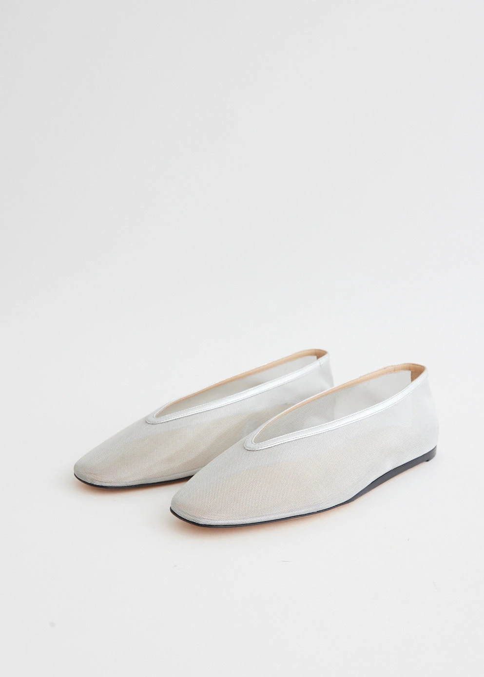 Established in 2016 by Lily Atherton Hanbury and Katya Shyfrin, Le Monde Beryl elevates classic shoes and accessories silhouettes with a contemporary sensibility. The Luna Mesh Slippers are a modernised take on classic ballet flats, with a cushioned calf leather insole and leather piping.