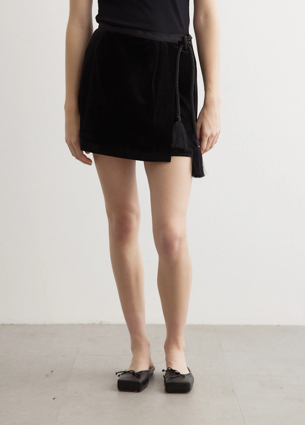 The California-based brand places vintage references at the heart of its design DNA, peppering its collection with ruched and ruffled details. Made from velvet, the Luz Skirt is cut to a mini length and features a wrap front with ties.Â