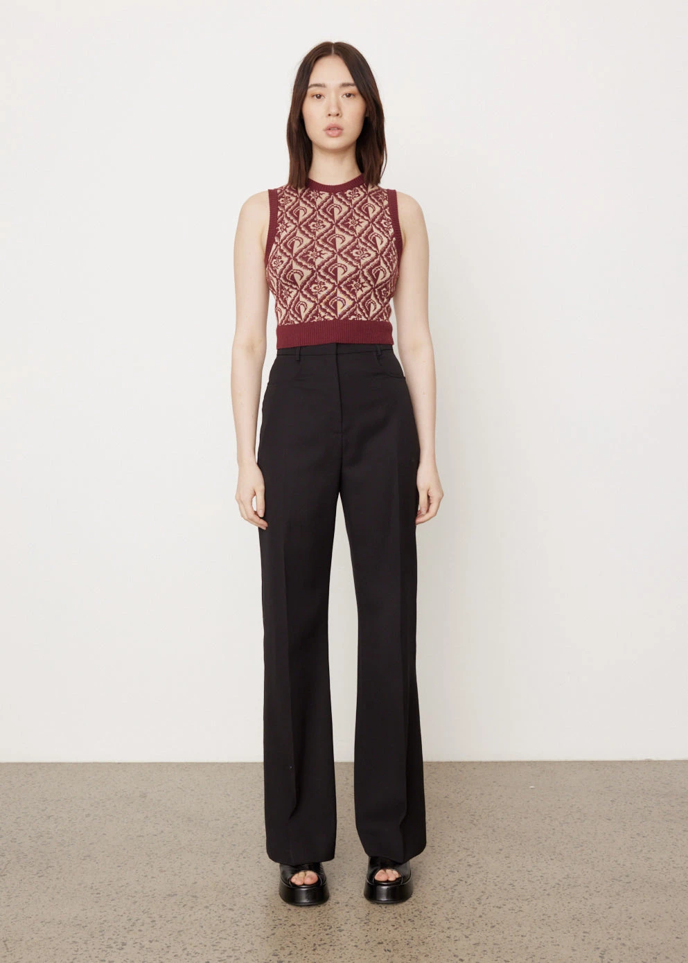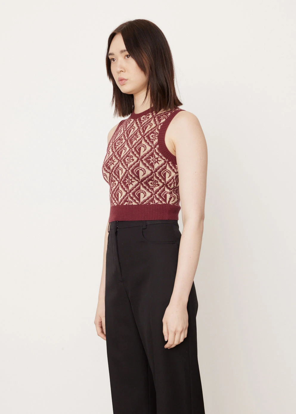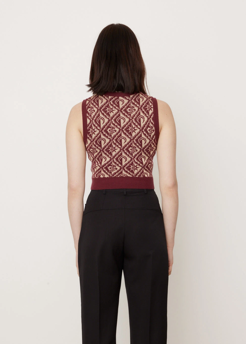 Marine Serre founded her eponymous label in 2017, renowned for her fusion of sportswear-styling with a futuristic edge by interweaving influences of Arabian and Western cultures. Crafted from a wool-blend knit, the Moon Diamant Sleeveless Pullover is adorned with a patterned Moon Diamant motif. The cropped silhouette offers a slim fit.