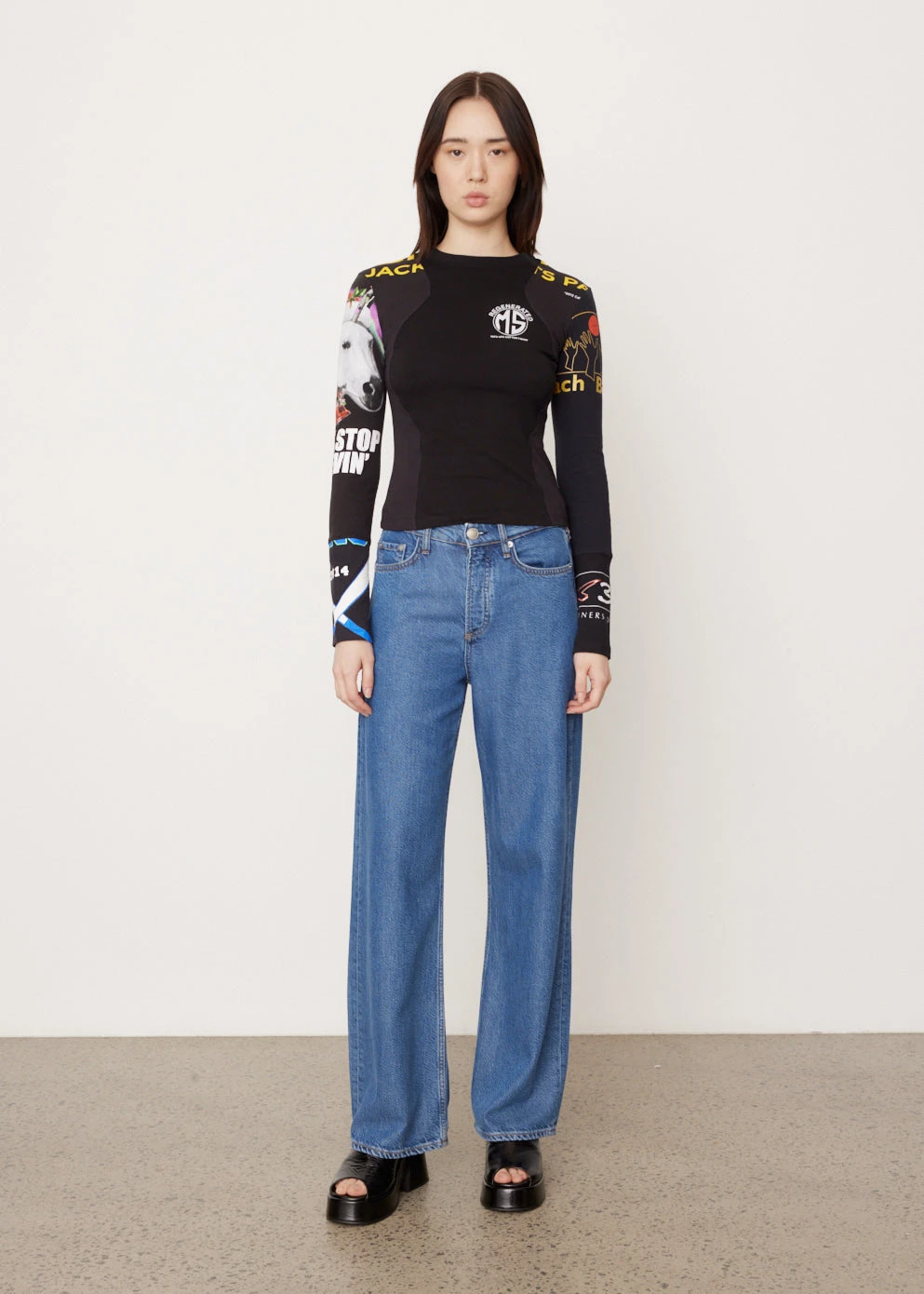 Marine Serre founded her eponymous label in 2017, renowned for her fusion of sportswear-styling with a futuristic edge by interweaving influences of Arabian and Western cultures. Crafted from biodegradable and upcycled cotton, the Regenerated Graphic Patchwork T-Shirt offers a patchwork design of varying fabrics, texts and patterns.