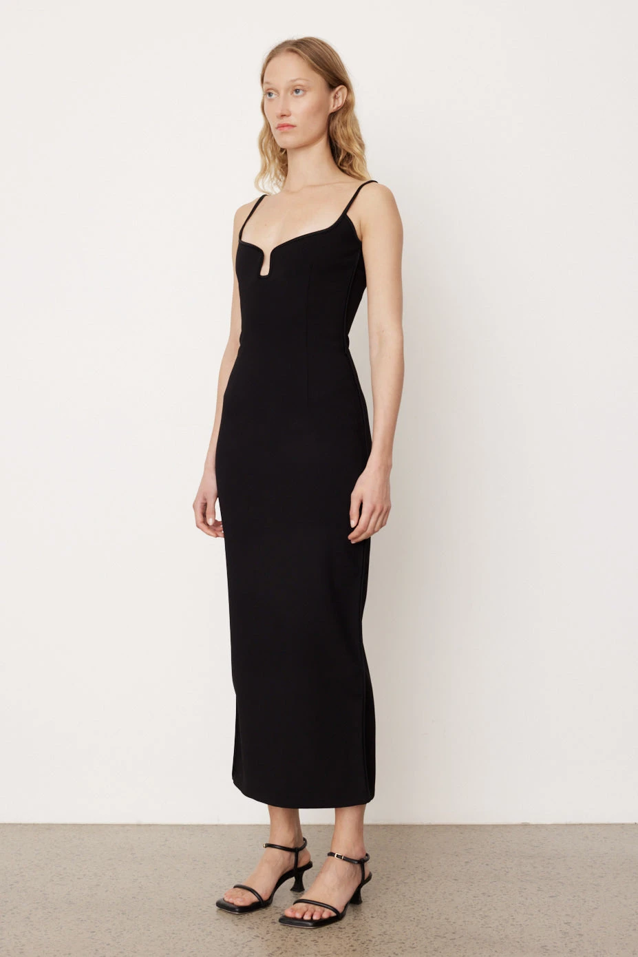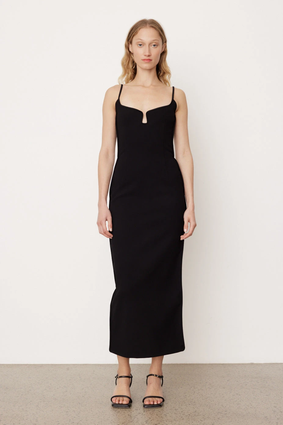 Launched in 2015, New Zealand-based label Paris Georgia brings a unique combination of clean lines, luxurious fabrics, and subtle hues to its offerings of timeless ready-to-wear pieces celebrating the beauty of the female form. Made from recycled polyester, the Marlo Dress is a slim-fitting silhouette that’s framed with a dipped neckline. It’s complemented with contrast stitching for a modern look.