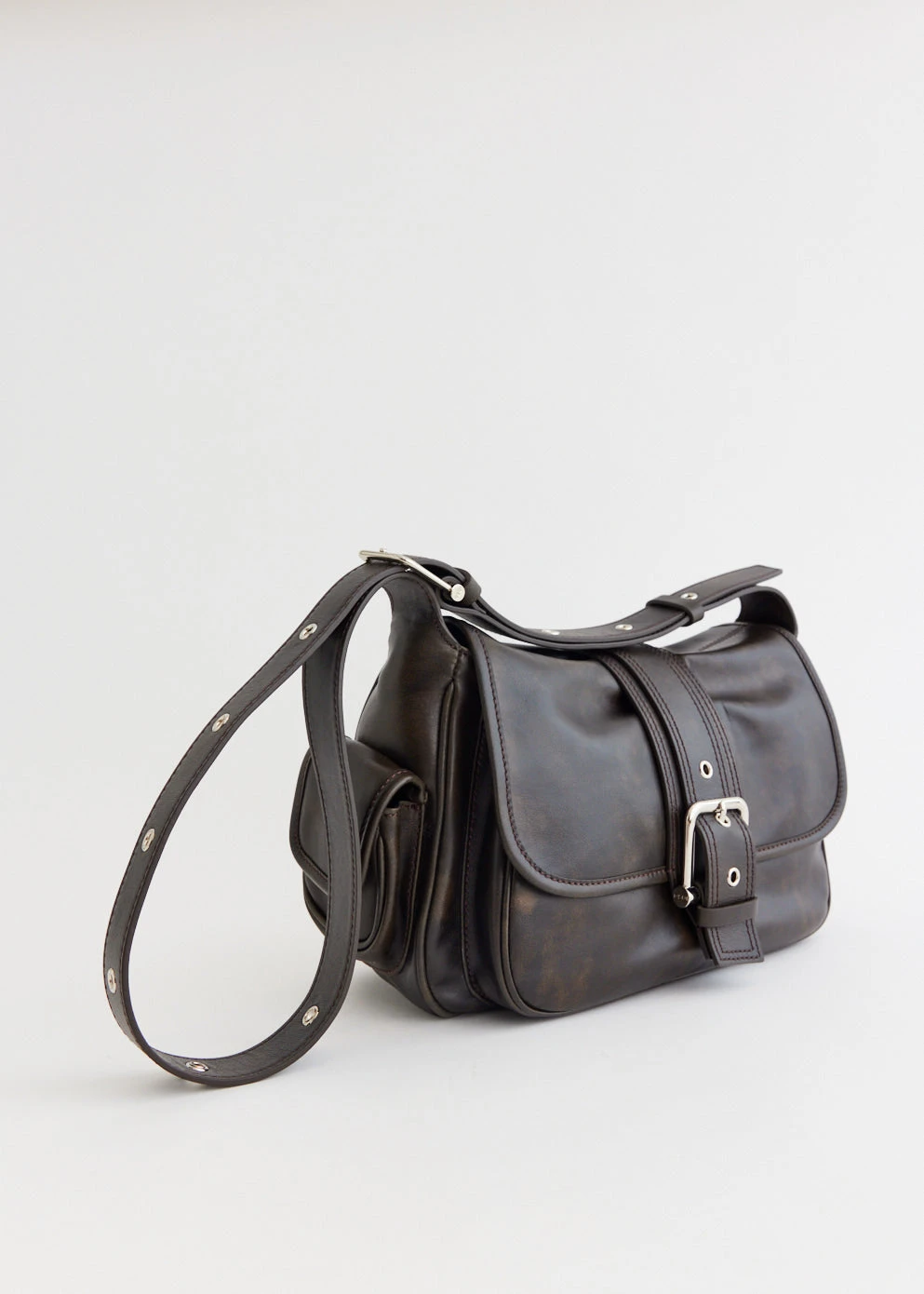 Launched in 2016, South-Korean label OSOI curates a collection of bags and shoes that artfully blend androgynous styles with sophisticated craftsmanship. “Osoi”, a Japanese term meaning “slow and patient”, reflects the brand’s focus on creating timeless designs. Crafted from a smooth leather, with denim detailing, the Hobo Brocle Bag features a zip opening, with a large buckle closure. Detailed with an adjustable strap to cater to all styles.