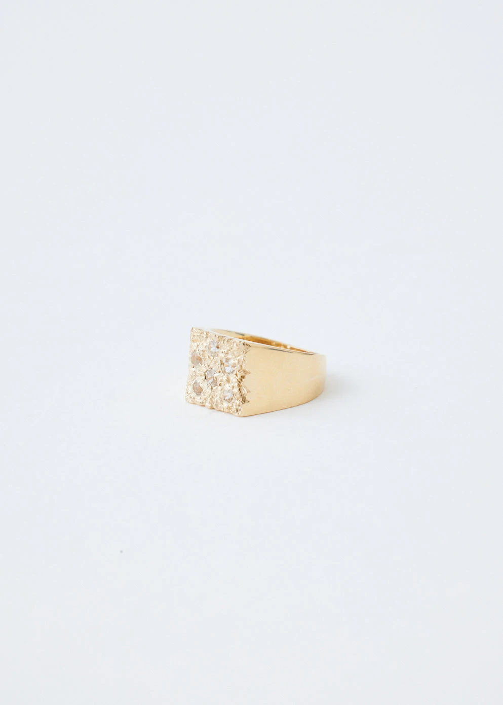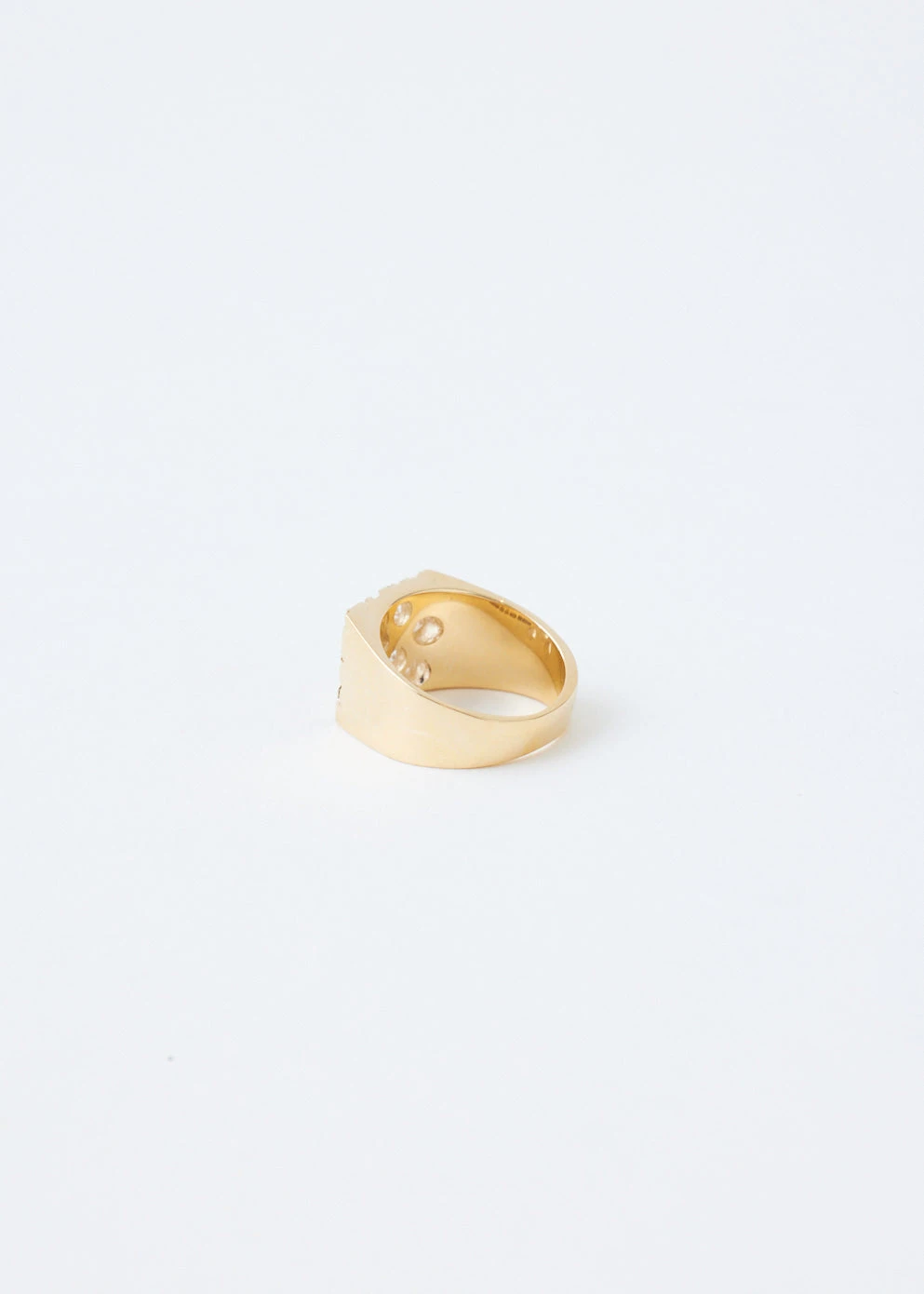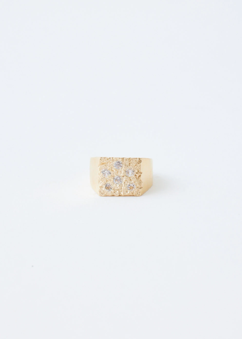 Founded in 2018, Bleue Burnham’s eponymous label aims to be “a force for good with genuine ambition to improve our current environmental position”, with carefully crafted jewellery made from precious stones and metals. The Mini Rose Garden Signet Ring is crafted by hand from 9k gold with clear lab grown sapphire and a carved front.