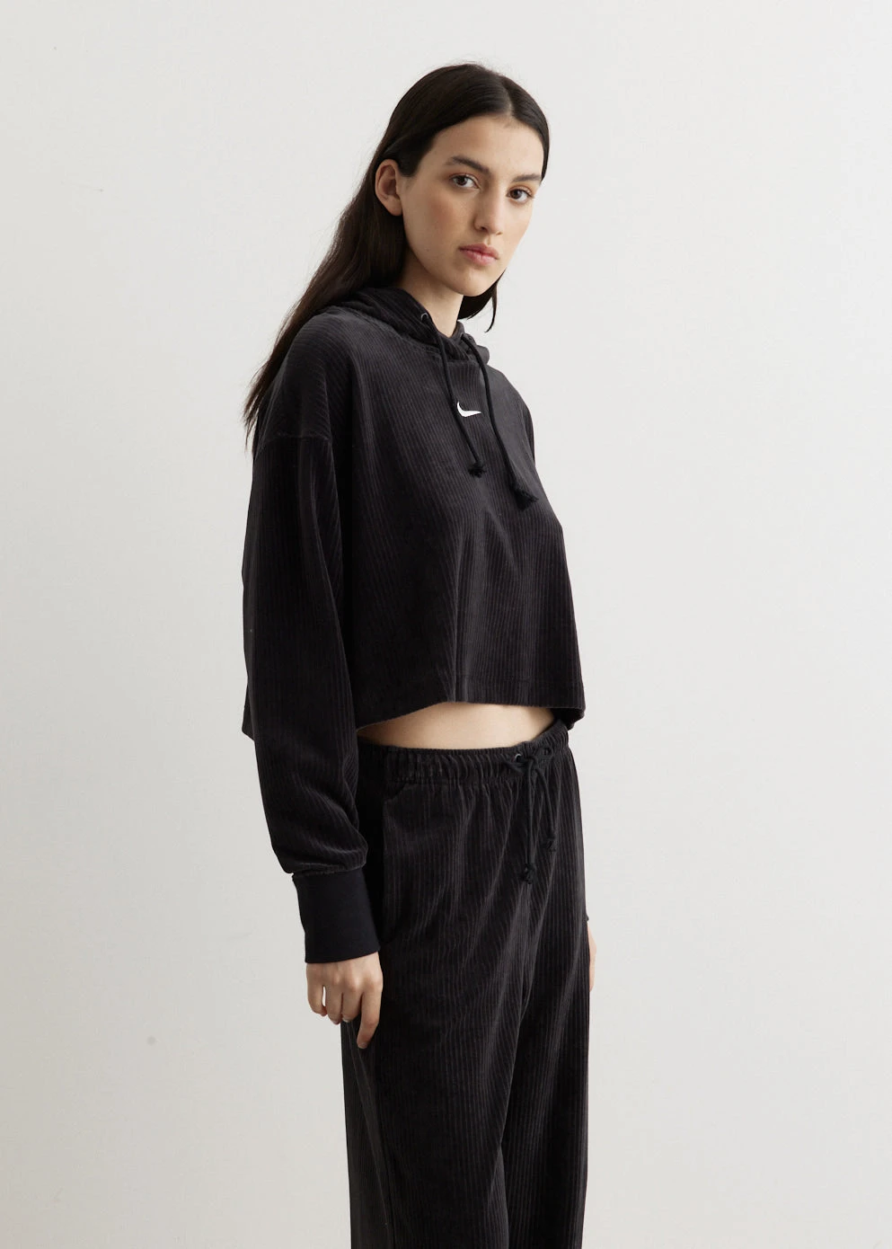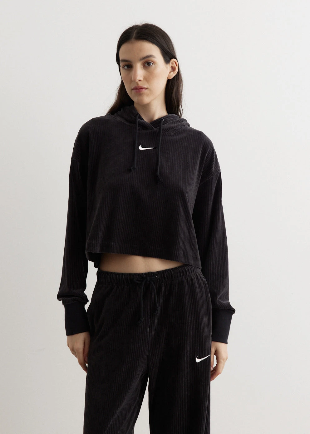 Known for its innovative designs and heritage sport aesthetic, Nike delivers all the best street and sportswear across a range of sweats, tees, pants and classic kicks. The Velour Crop Hoodie is constructed from a ribbed, velour style cotton with a cropped fit and embroidered swoosh logo. This hoodie can be styled with the coordinating Wide Leg Velour Pants.