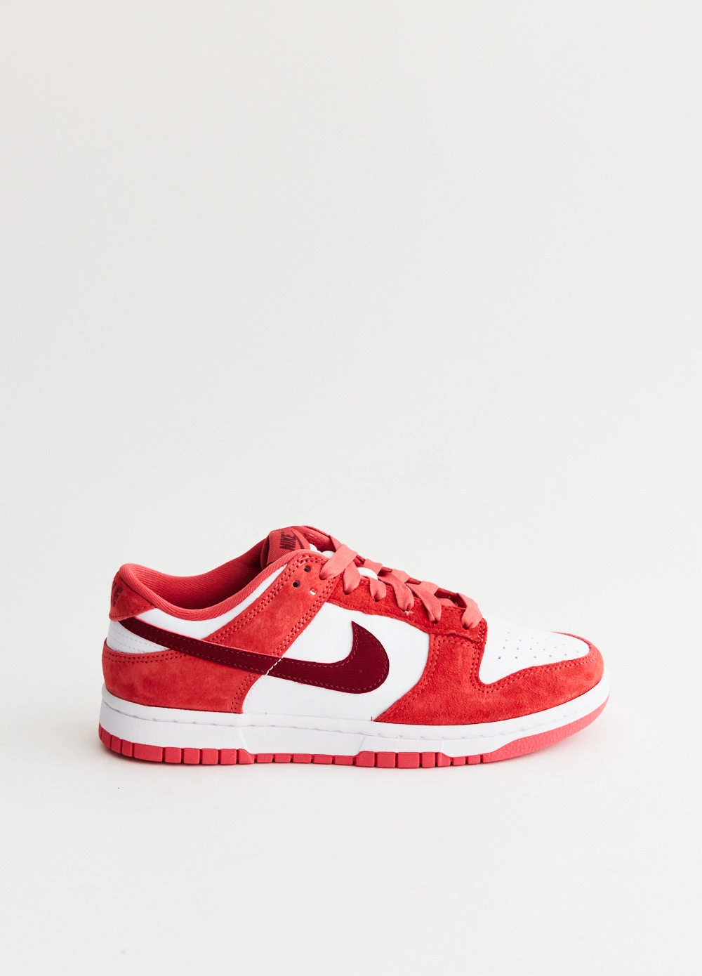 Known for its innovative designs and heritage sport aesthetic, Nike delivers all the best street and sportswear across a range of sweats, tees, pants and classic kicks. The Women’s Dunk Low ‘Valentine’s Day’ Sneakers maintain their timeless design with a heartwarming twist. Hues of pink and red add a touch of Valentine’s appeal, while even the Swooshes, tongue, heel, and sole share in the love.Â