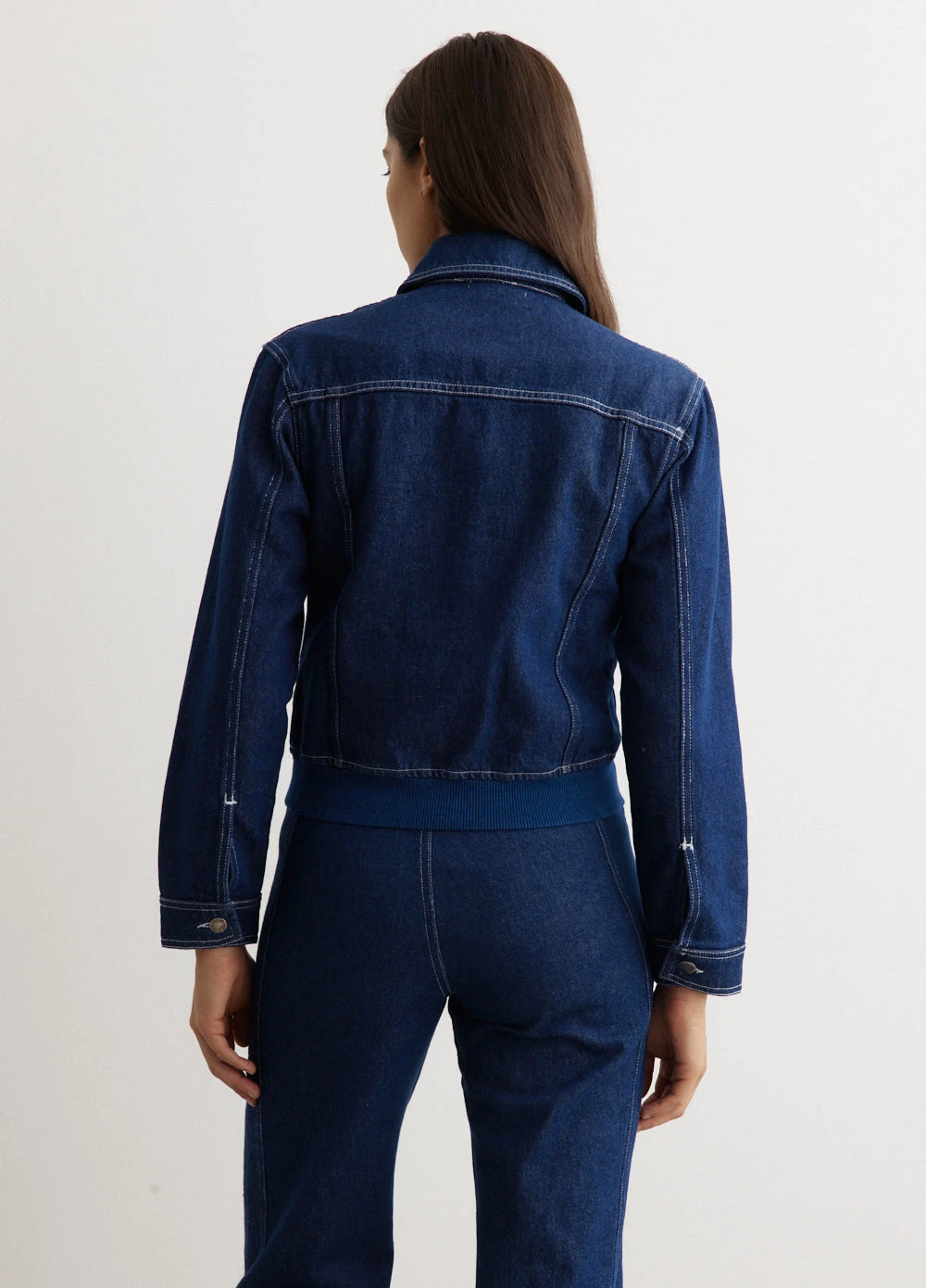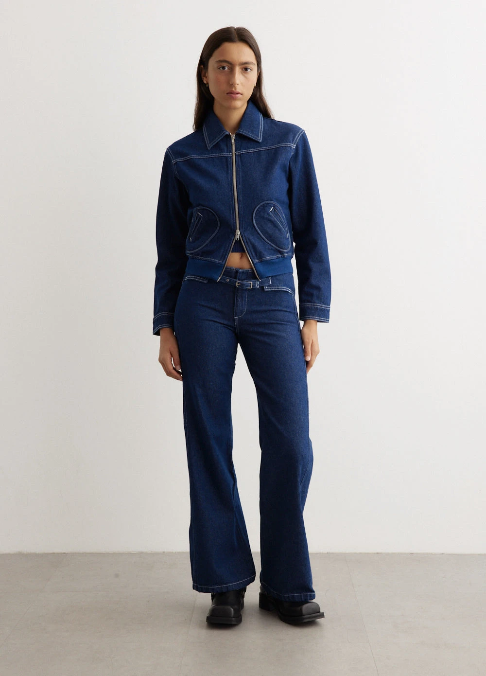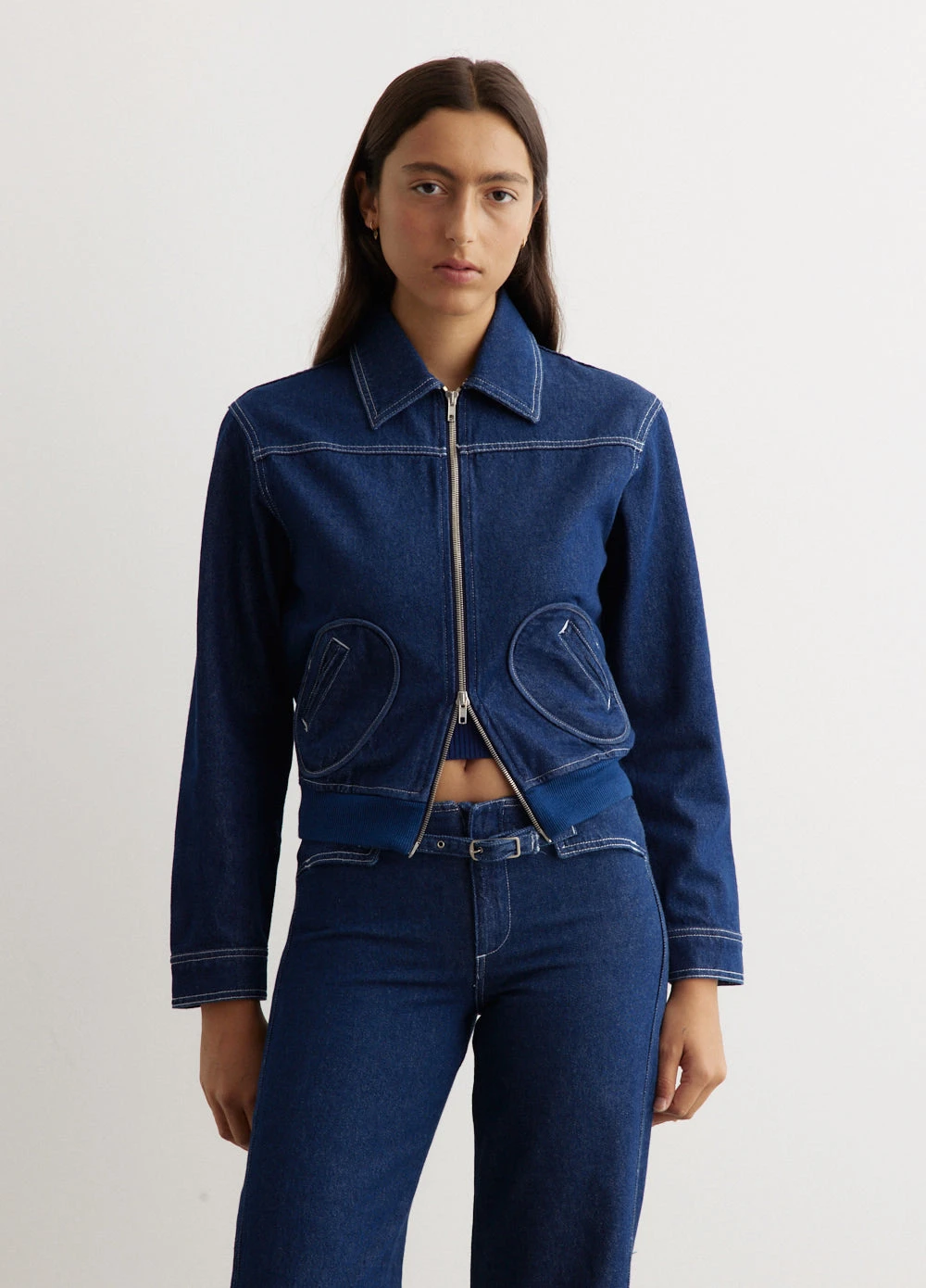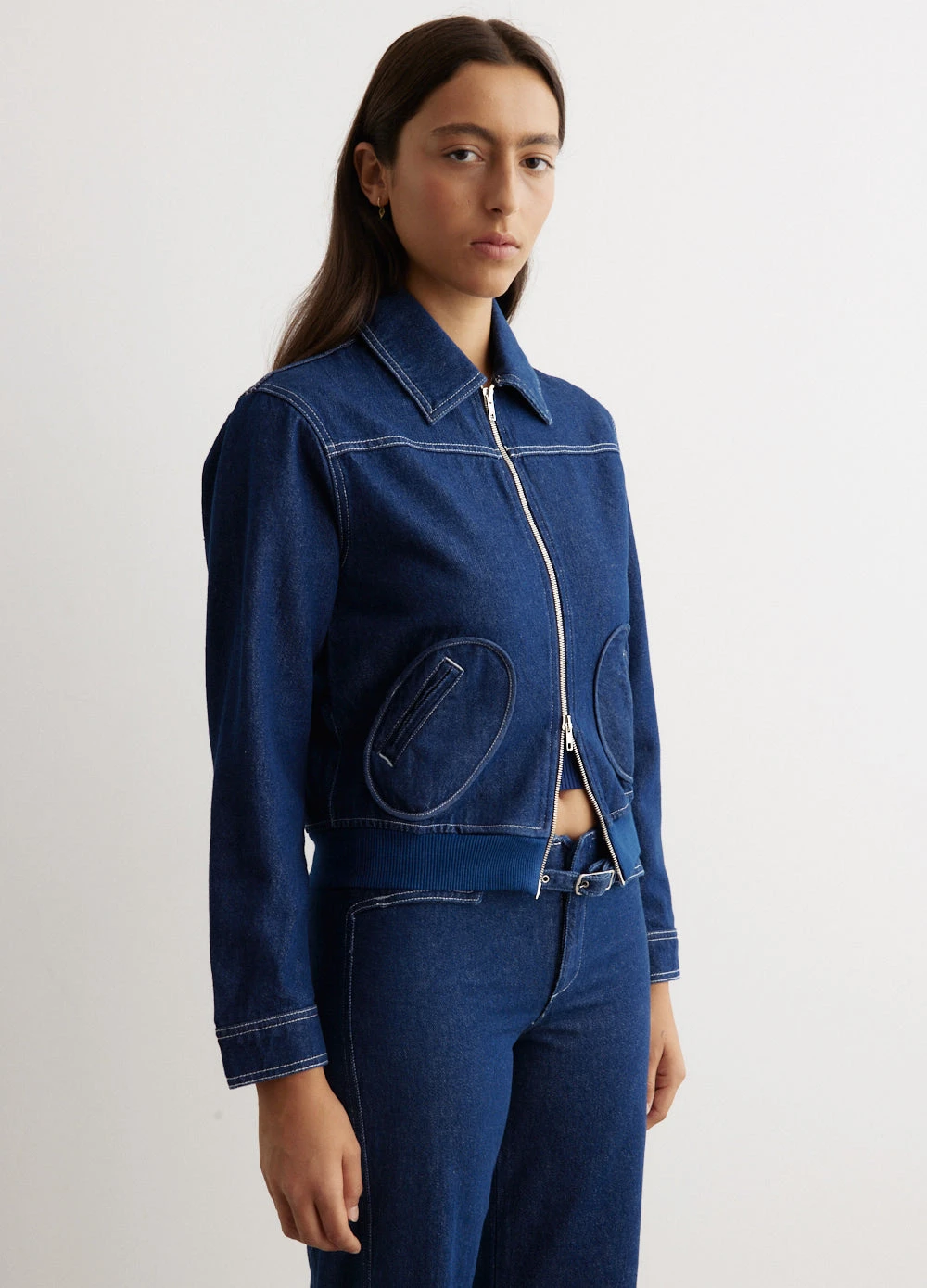 Founded in 2018 by twins Claudia and Sayana Durany, Gimaguas is powered by relationships and conversation.A focus on carefree silhouettes, bespoke prints, technical knitwear and craft-inspired detail. All Gimaguas pieces are designed in Barcelona. Crafted from a cotton denim, the Oahu Jacket is tailored to a slim fit. Adorned with a two way open ended zip and an elastic waistband.