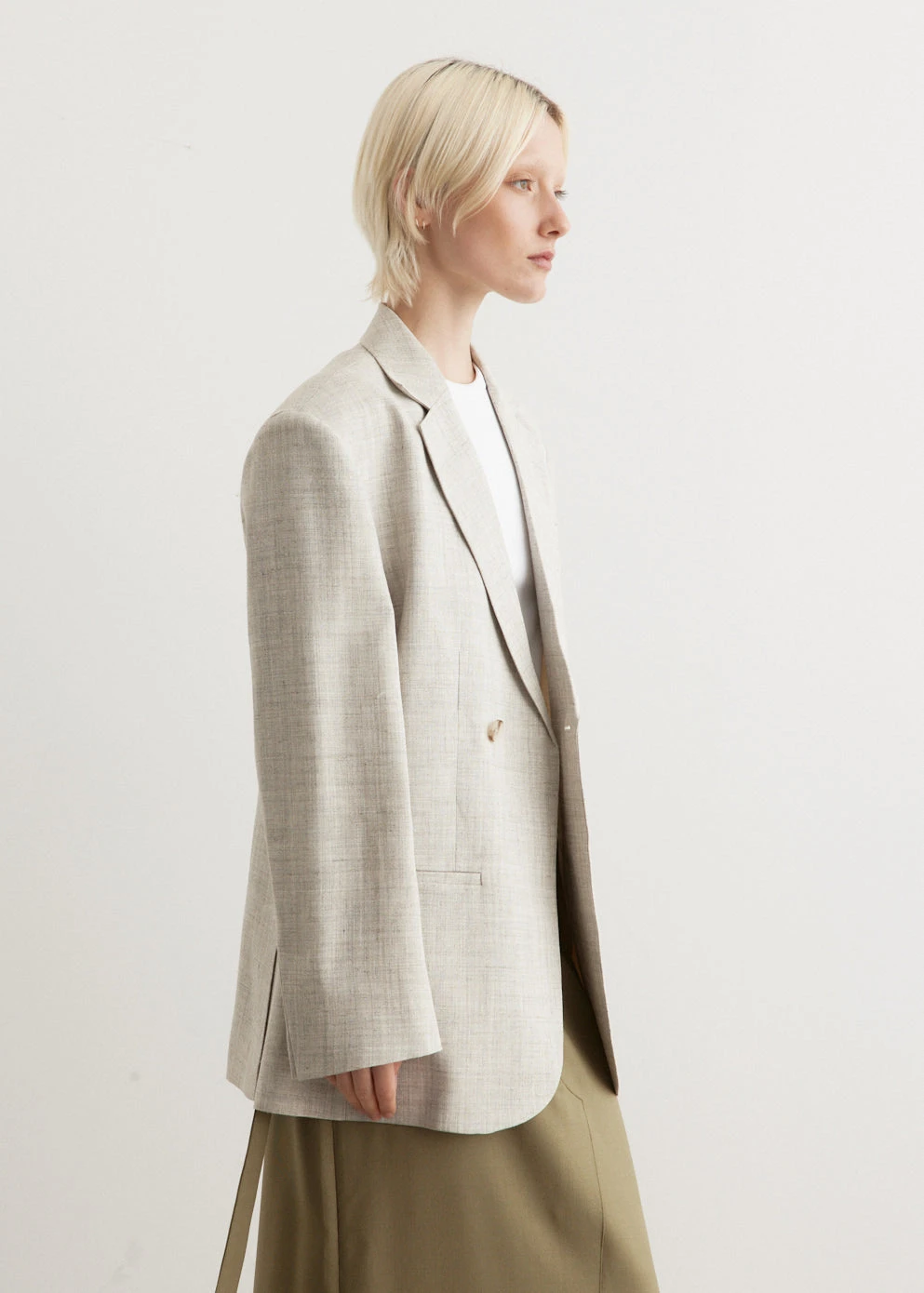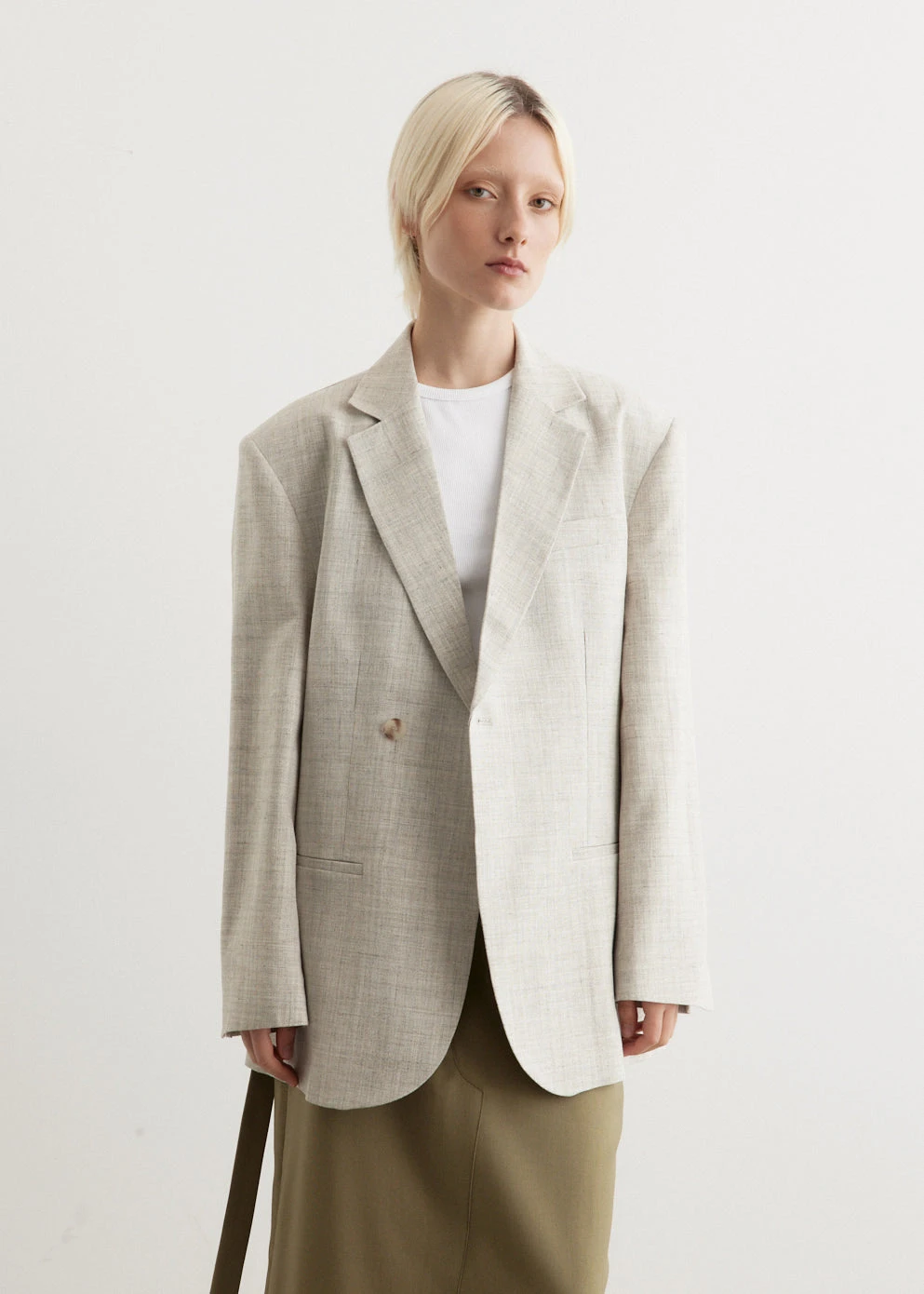 Róhe was birthed out of Amsterdam with particular attention on creating modern, timeless clothing that transcends seasons. Crafted from viscose, the Overlap Blazer is structured silhouette that fastens with one overlap button closure. Adorned with a menswear double slit at the back.