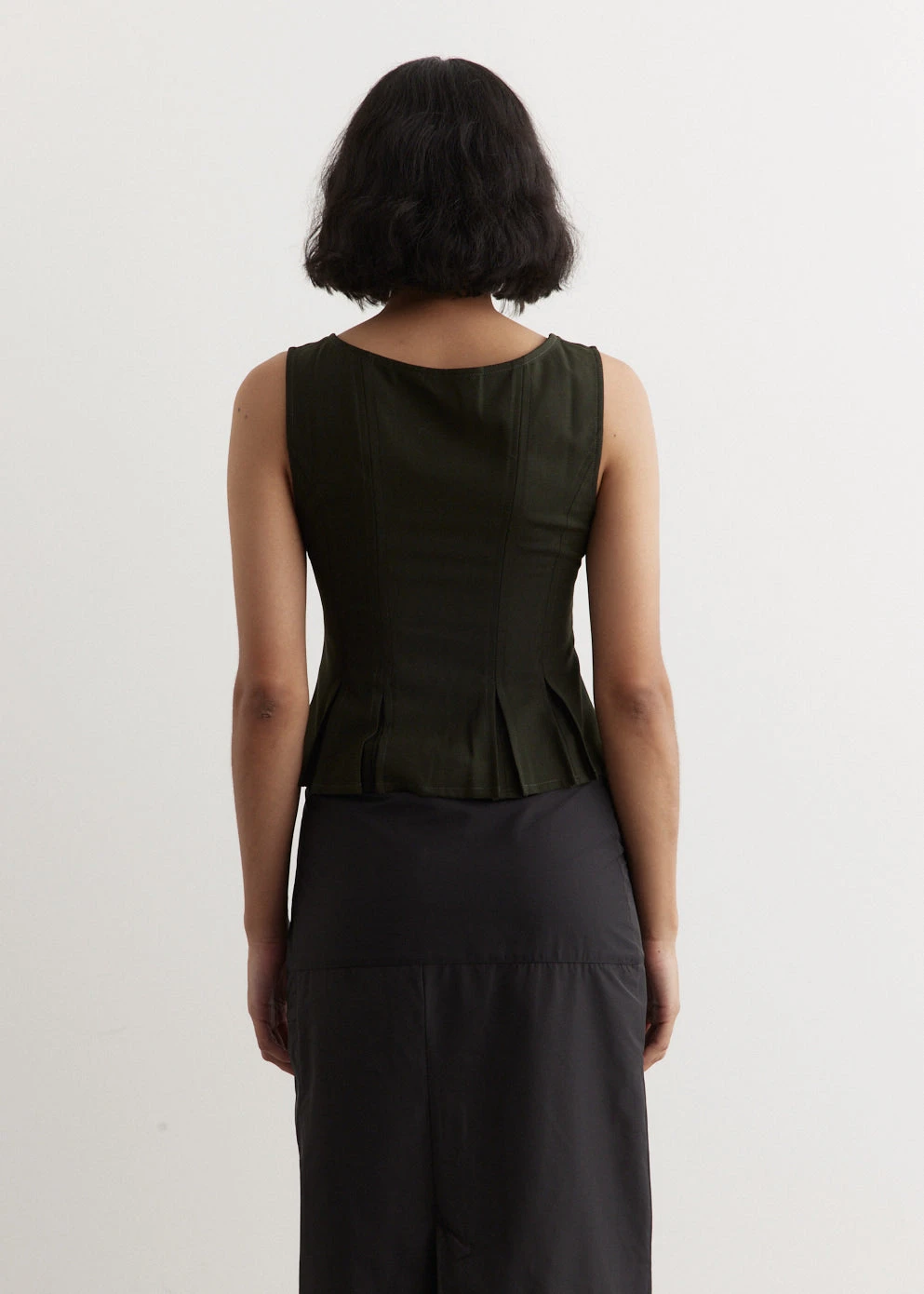 Barcelona-based brand Paloma Wool is renowned for its artisanal quality, retro silhouettes and the art of getting dressed. The Mauro Top features a recycled polyester blend construction, with a sleeveless design and corset-like styling. It is designed to be worn open, layered, or independently.
