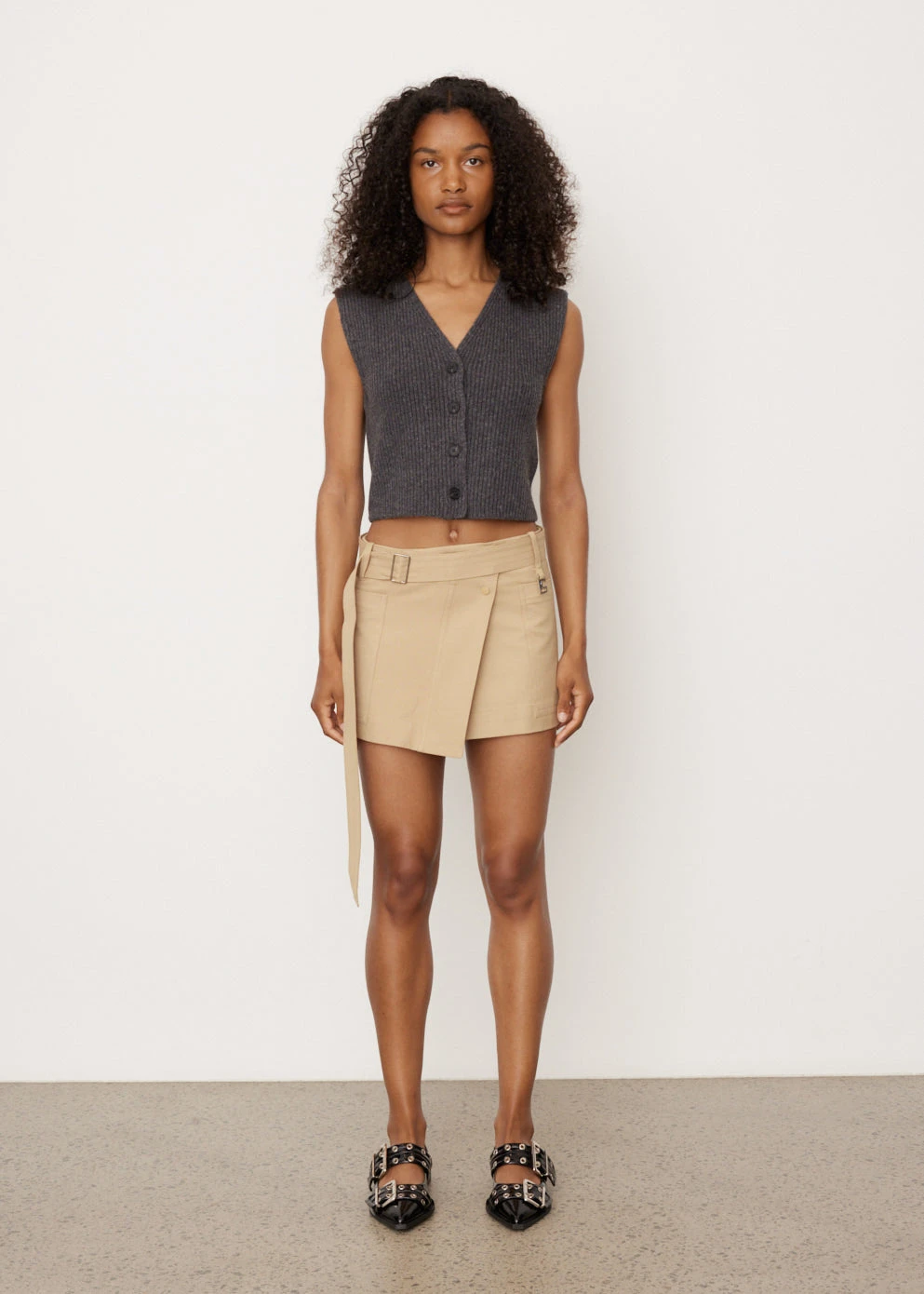 Birthed in Seoul, Low Classic’s philosophy revolves around beauty through simplicity and is delivered via updated, classic silhouettes. Made from a cotton-blend twill fabric, the Pocket Mini Skirt is characterised by its asymmetrical wrap closure and is cut to a mini-length.