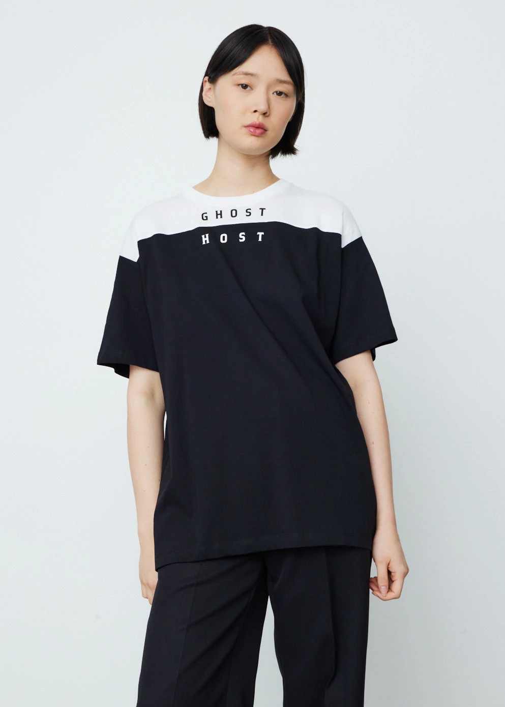Raf Simons is a Belgian fashion designer who is one of the world’s most revered designers today, known for his youth and counter culture inspired imagery and innovative silhouettes. The Big Fit Bicolour Americano T-Shirt Ghost Print is crafted frm pure cotton and a contrasting yoke with a printed “Ghost Host” slogan on the chest and logo patch on the back of the neck. Pair with the Classic Pants with Big Pockets.