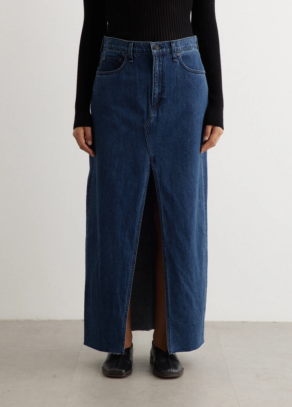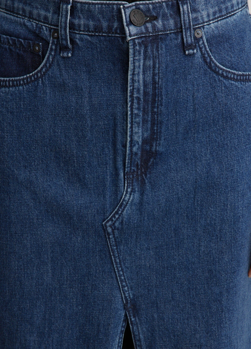Celebrated for their cult urban collections, rag & bone’s modern wardrobe essentials are infused with a downtown-cool attitude The Avery Skirt is the quintessential maxi-skirt style. It sits high on the waist and is fitted through the hip. Falling just above the ankle, it boasts a split at the center front. Made from durable denim blend fabric.