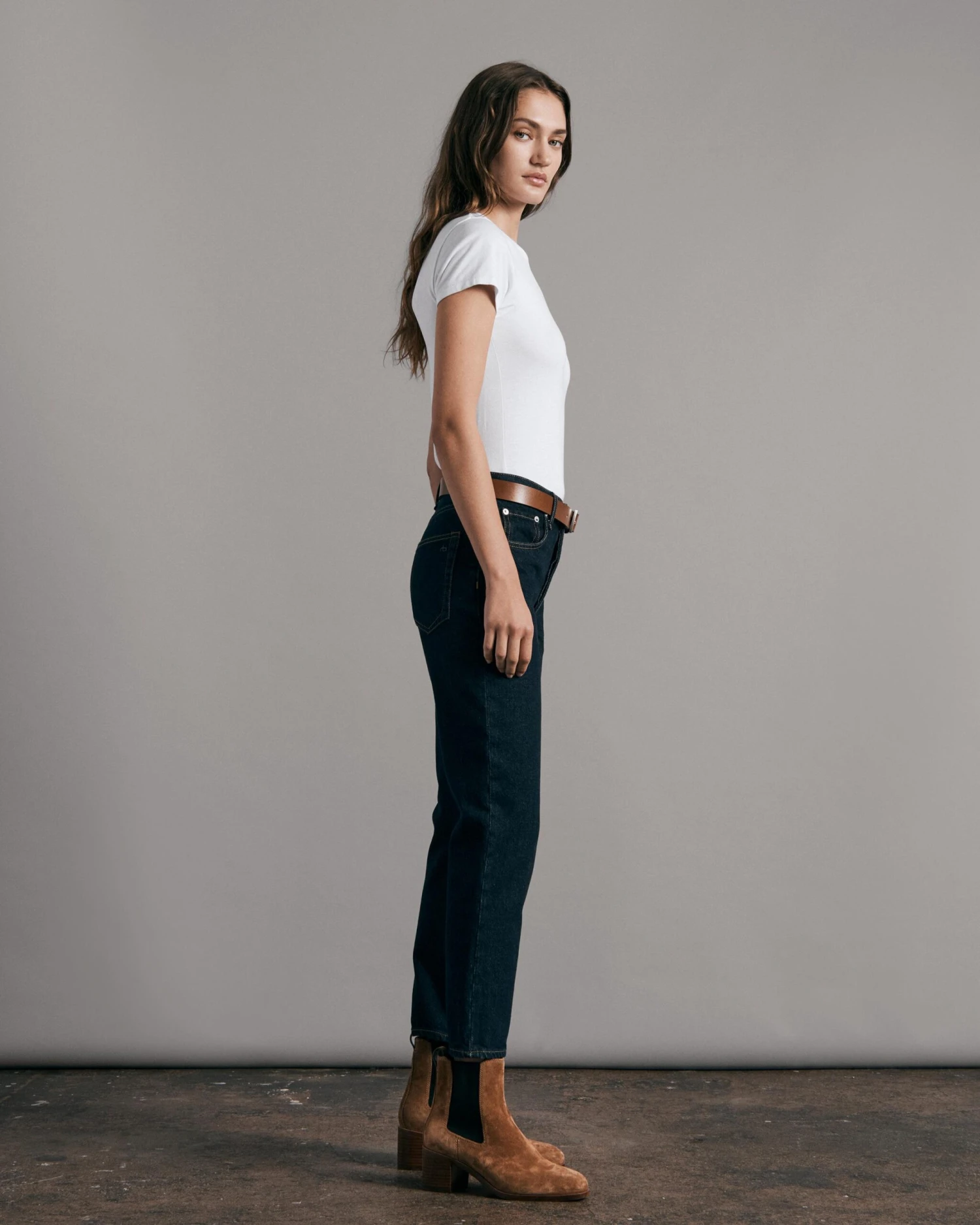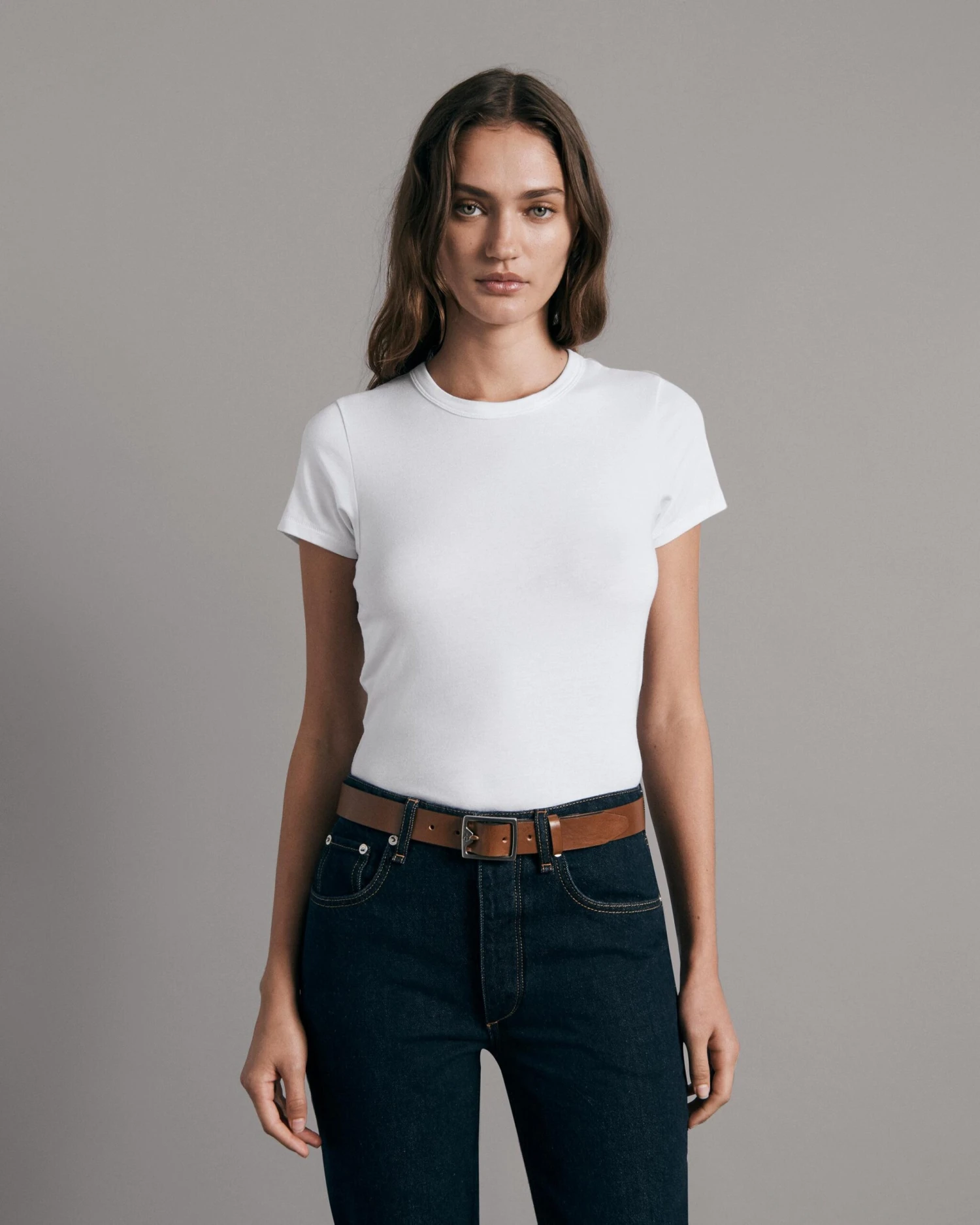 Discover rag & bone’s latest collection, ‘Icons’, timeless essentials for an iconic wardrobe. The Luca Baby T-Shirt is a classic essential for your to add to your wardrobe staples. It’s made from a silky lyocell-blend fabric and is slightly cropped with a slim fit. Dress it up or down, layer it or not, and complete the look with denim jeans and boots.