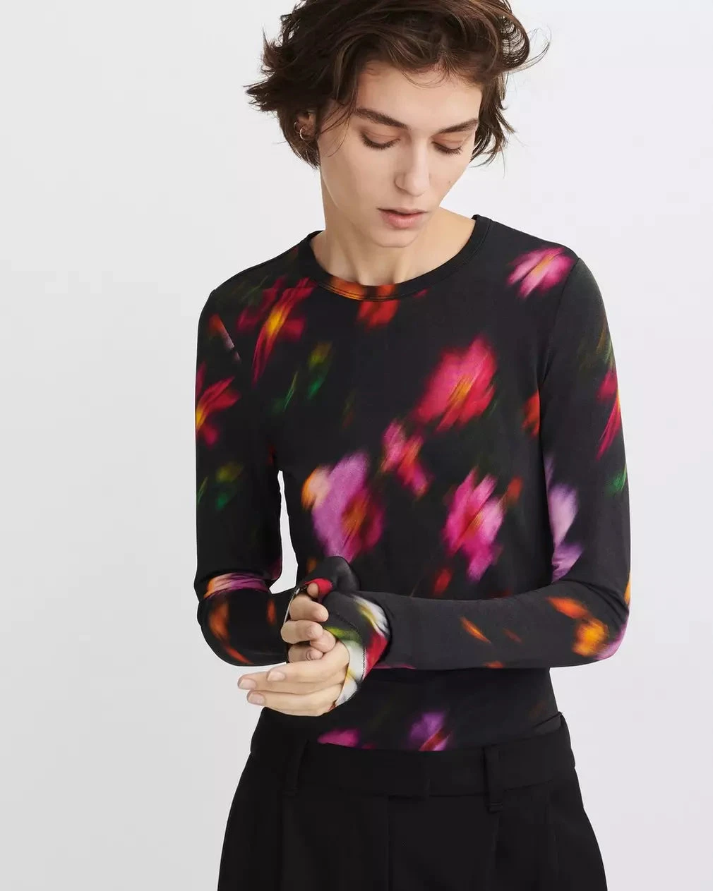 Celebrated for their cult urban collections, rag & bone’s modern wardrobe essentials are infused with a downtown-cool attitude. A base layer that’s anything but basic. The Sabeen Long Sleeve Top is designed for a slim fit with long sleeves, it’s crafted in high stretch jersey with a print that makes an impact.