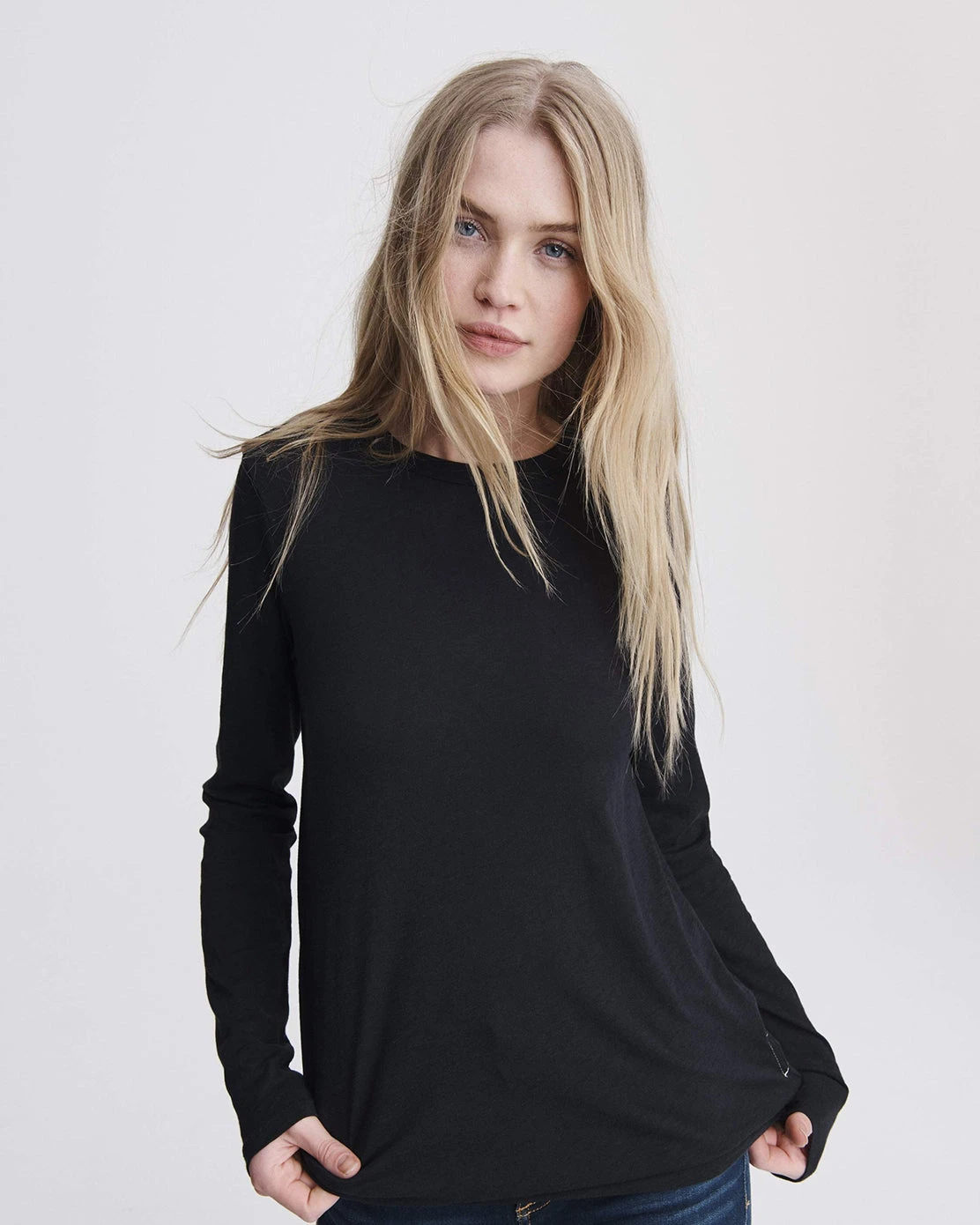 rag & bone exhibit their penchant for innovative fabrication with the Slub Long Sleeve T-Shirt. The signature jersey offers incredible drape and softness to this wardrobe staple. Finished with a crew neckline and a curved hemline.
