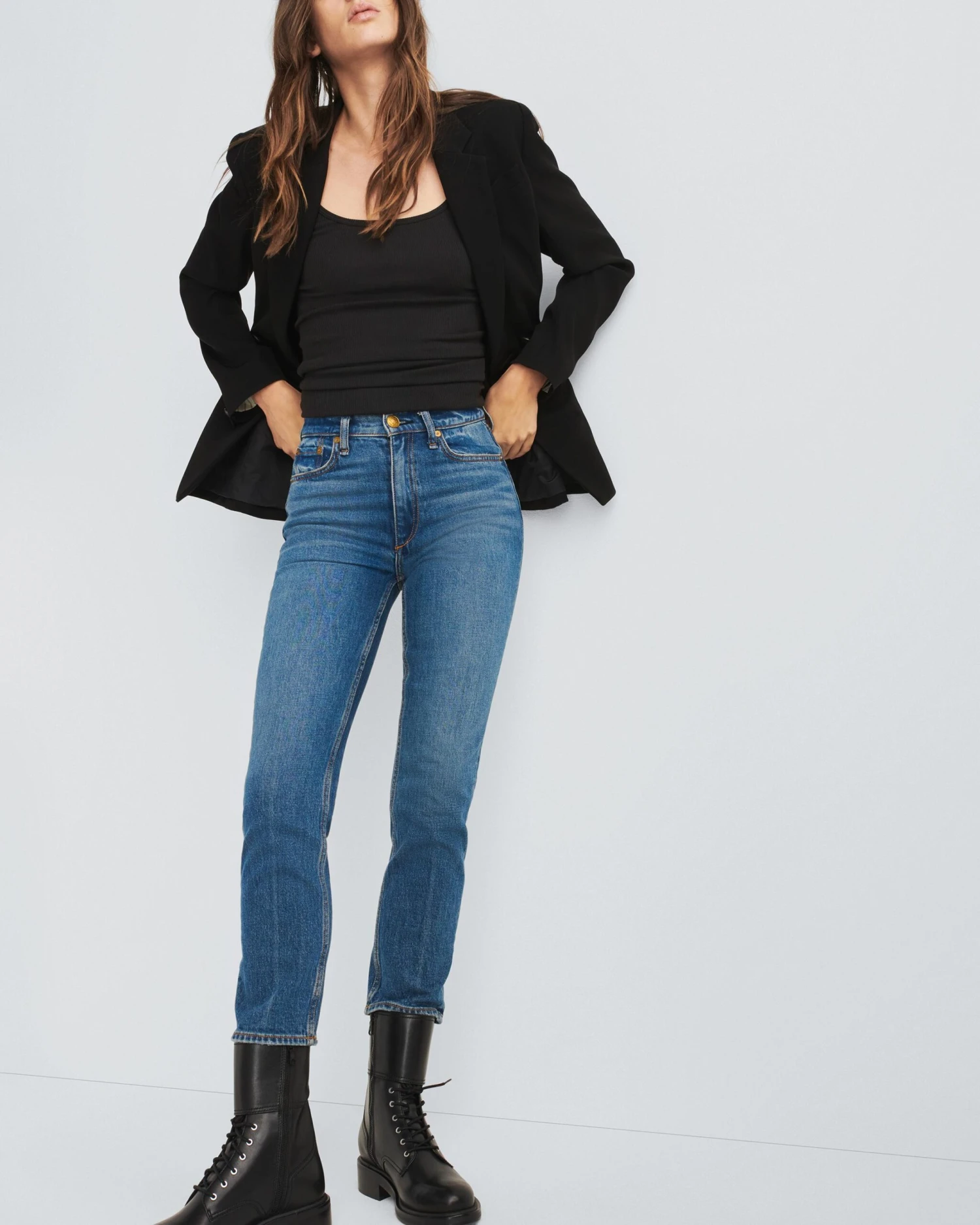 Celebrated for their cult urban collections, rag & bone’s modern wardrobe essentials are infused with a downtown-cool attitude. Crafted from a cotton-elastane blend fabric with a stretch, the Wren Slim Jeans are designed with a straight leg with a slim fit. It’s detailed with fading and whisker details for a worn-in look.Â