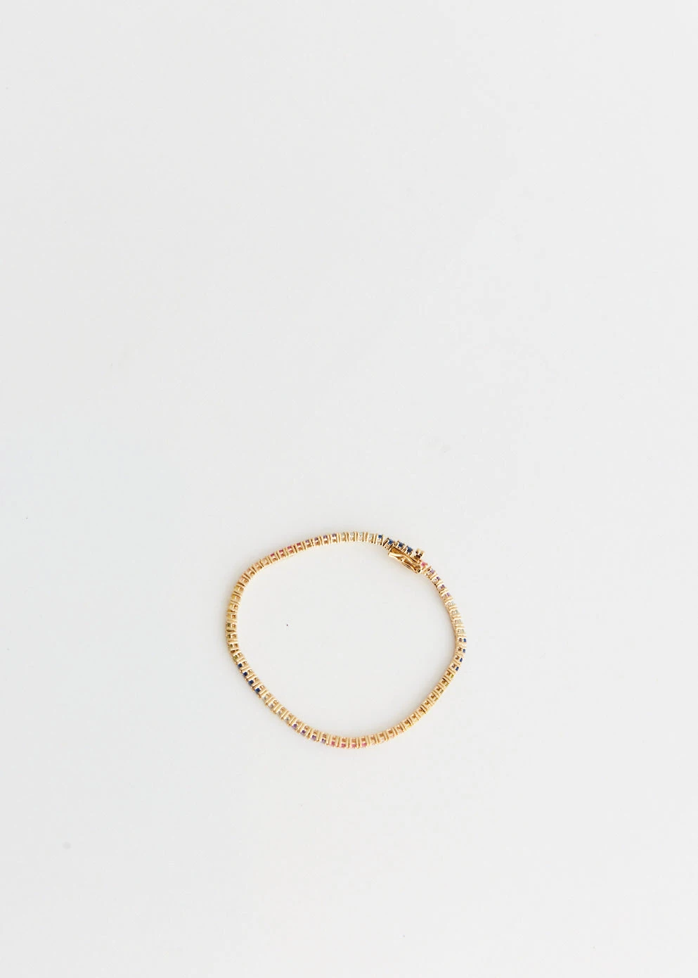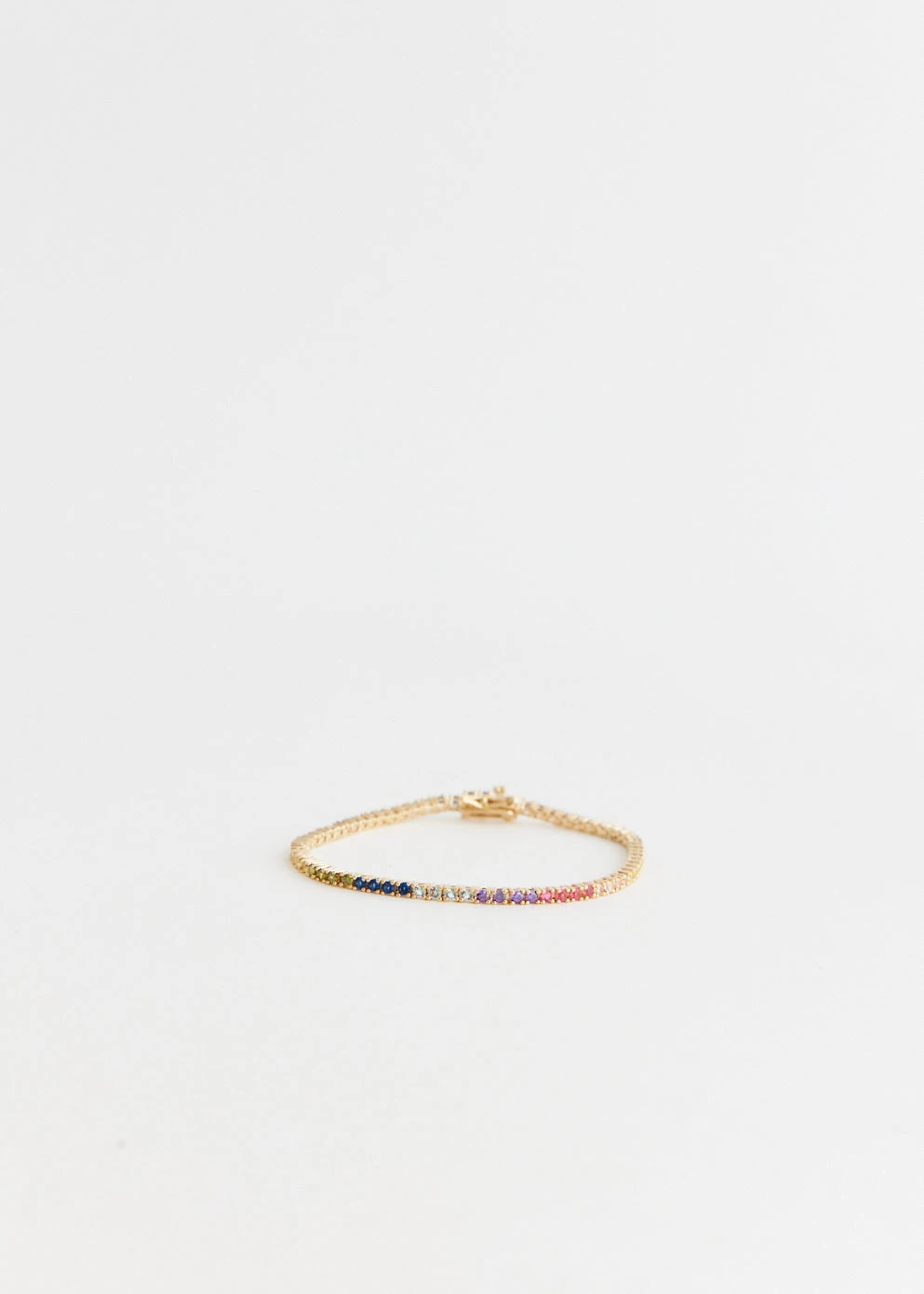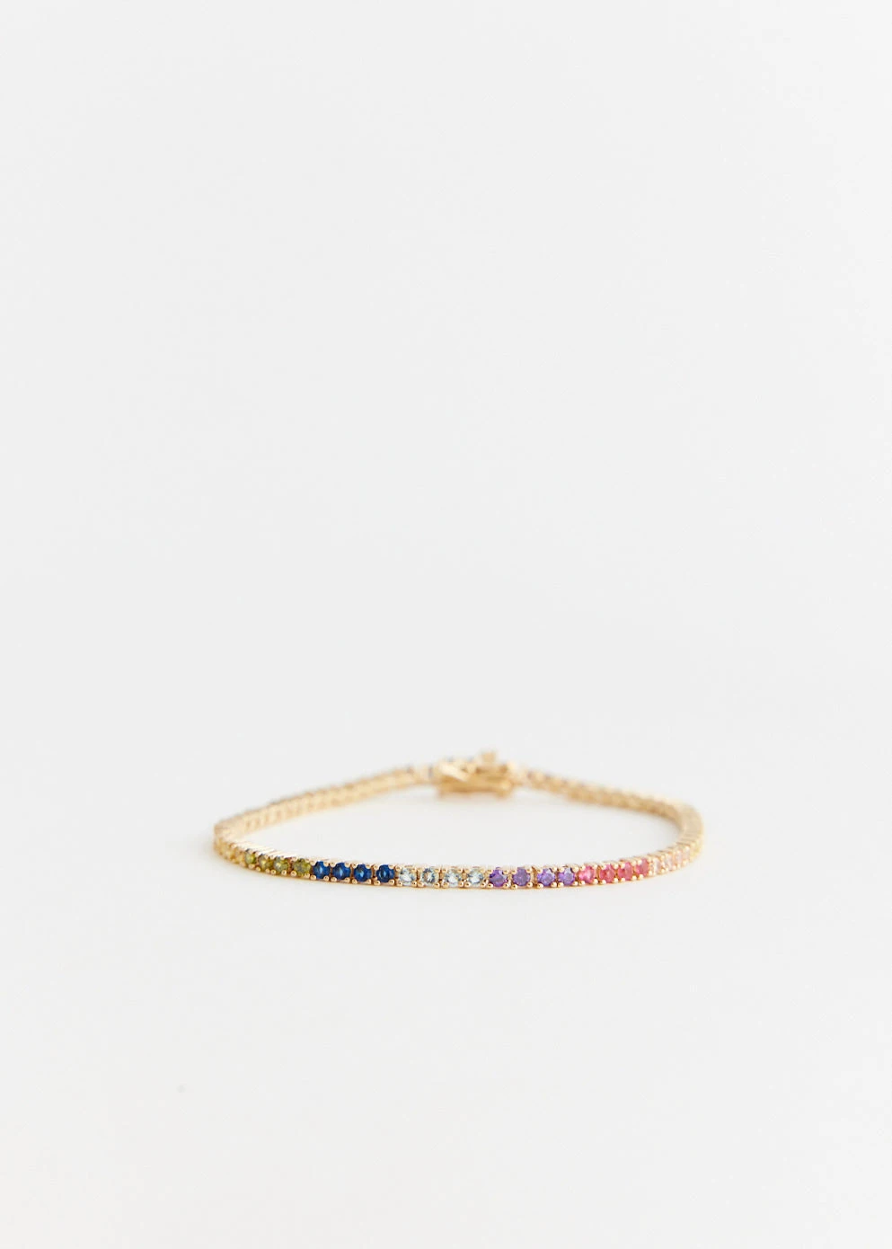 Curated to exude confidence and energy, Incu welcomes their ‘Incu Jewellery’ collection. Enhance your uniqueness with these vibrant and dynamic pieces for a timeless aesthetic. The Rainbow Tennis Bracelet is adorned with arranged layers of multicoloured crystals.