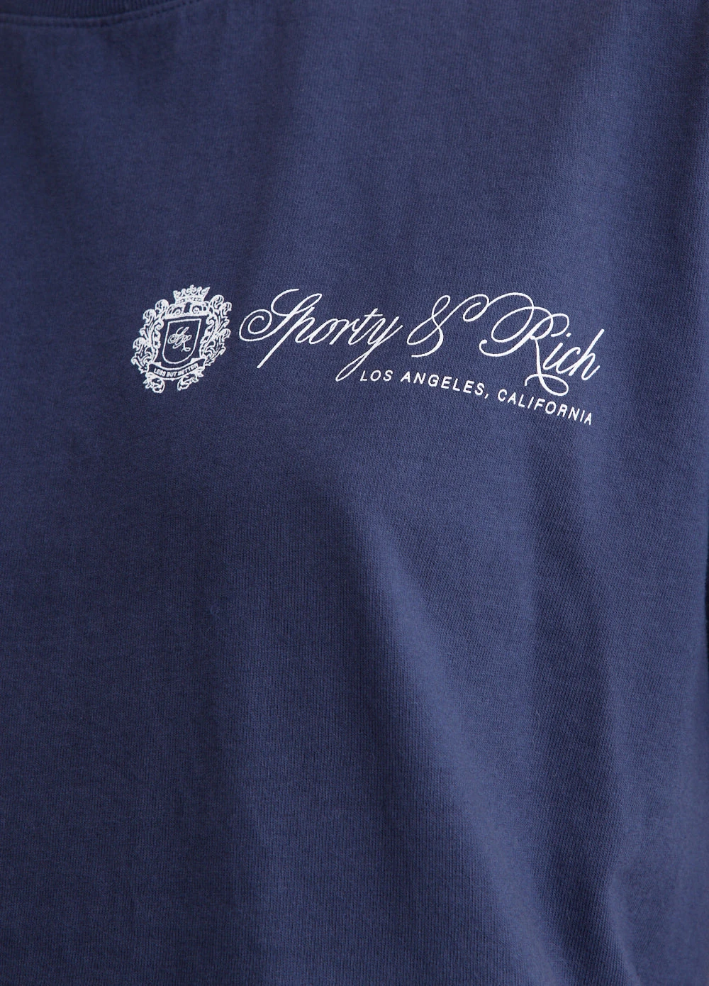 All about health and wellness, Sporty & Rich is the Los Angeles-based label that prides itself on sustainability, quality and a distinct ’90s-inspired sports aesthetic. Crafted from cotton, the Regal T-Shirt is a classic silhouette from the label that’s adorned with a the brands logo print on the chest.