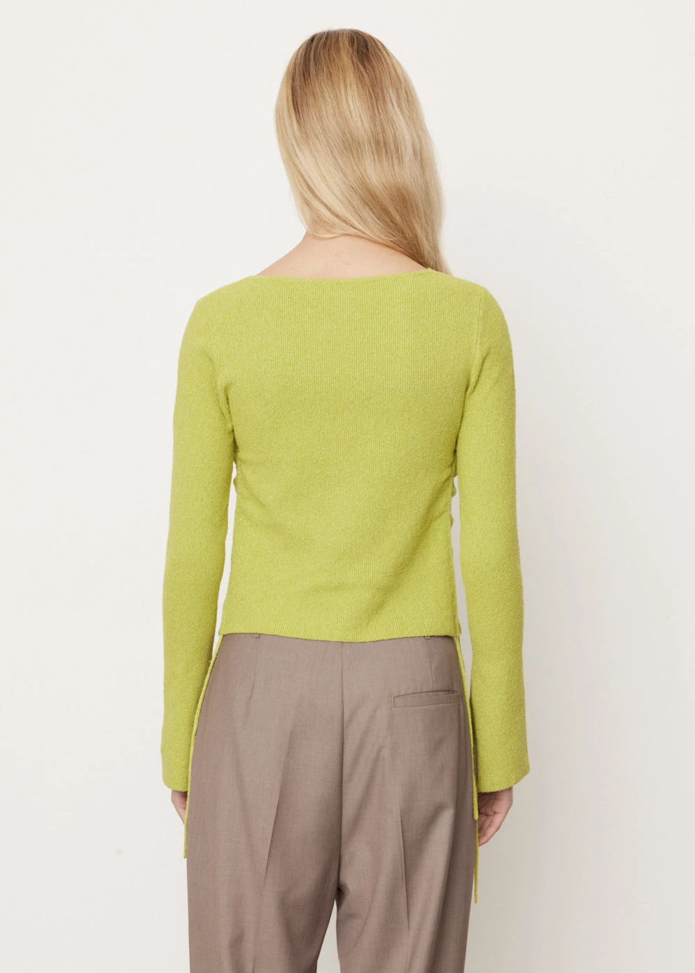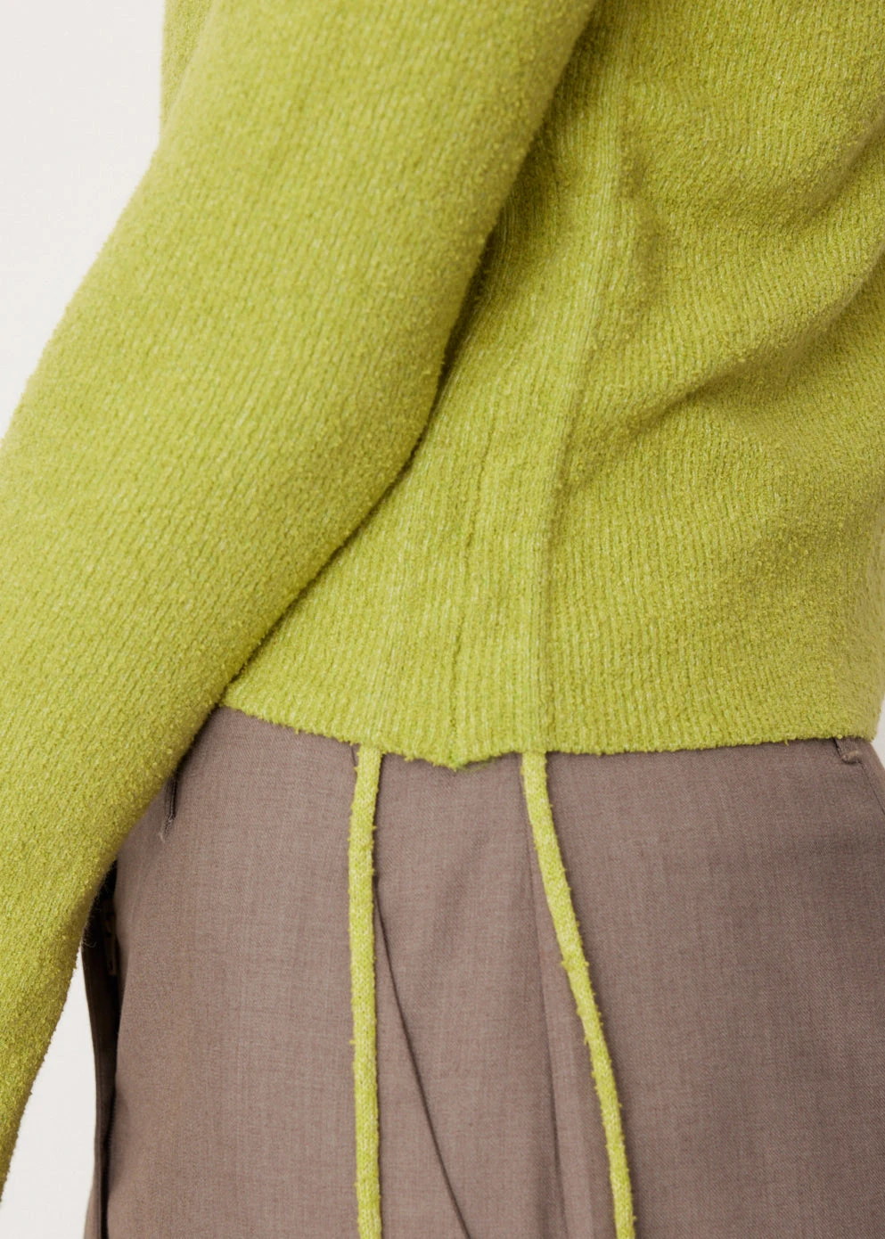 Incu Collection draws inspiration from ’90s grunge, minimalist architecture and fashion and the works of artists such as Amrita Sher-Gil and Tagore. This range exudes a sense of authenticity in staple pieces, offering utility elements and unique variation in its textures and colour palette. Crafted from a cotton-nylon blend fabric, the Saint Cropped Gathered Knit is distinct with its extended ties on the sides.
