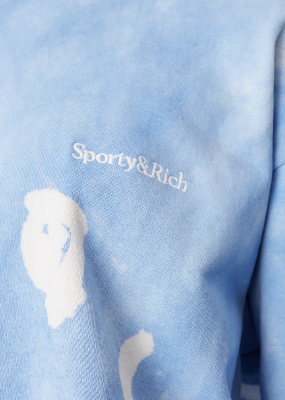 All about health and wellness, Sporty & Rich is the Los Angeles-based label that prides itself on sustainability, quality and a distinct ’90s-inspired sports aesthetic. The brands new summer collection puts an exciting twist to the classic styles, the iconic Serif Logo Embroidered Tie Dye Crewneck is crafted in thick cotton jersey with an embroidered logo over the heart. It’s fashioned with a tie-dye print throughout.