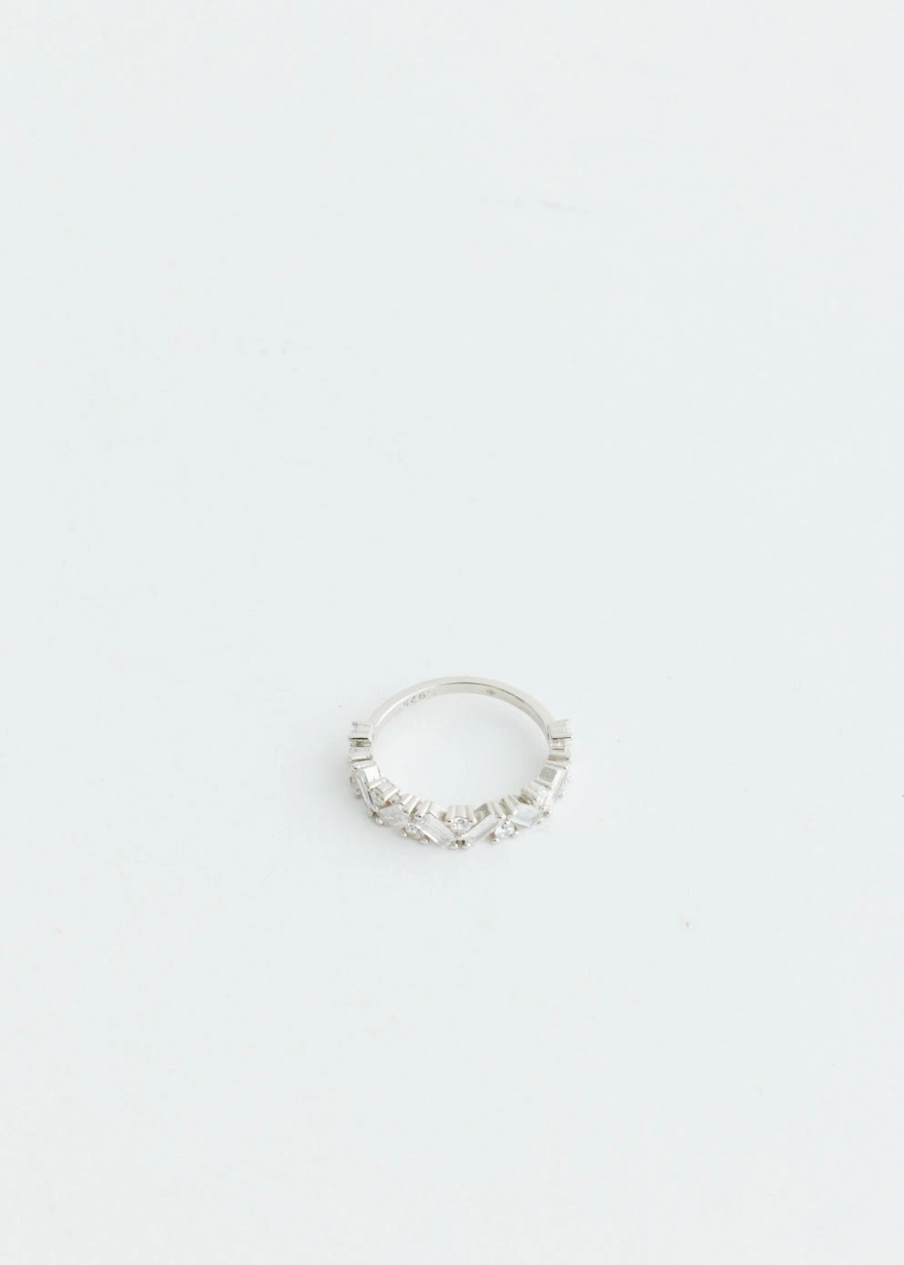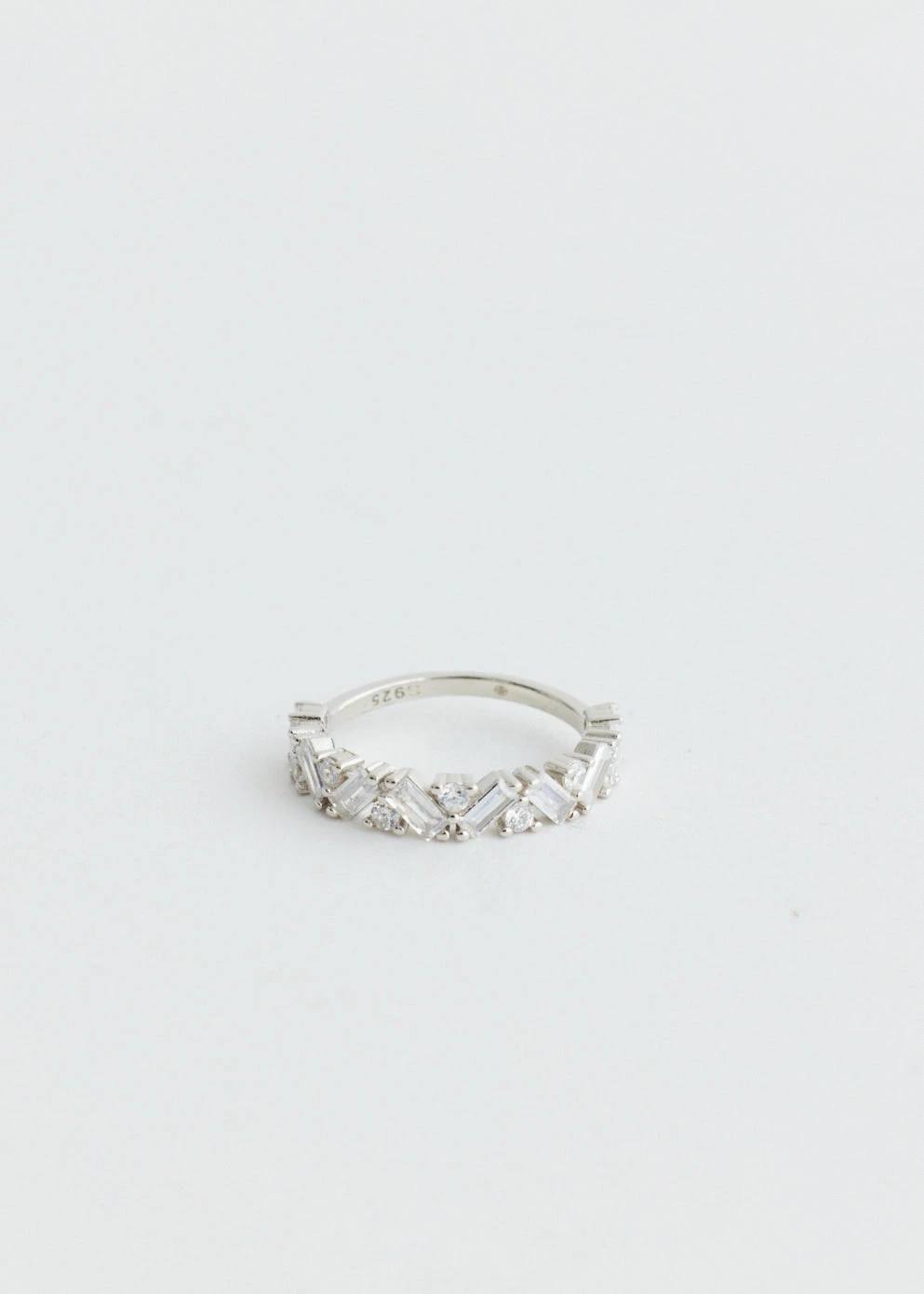 Curated to exude confidence and energy, Incu presents their ‘Incu Jewellery’ collection. Enhance your uniqueness with these vibrant and dynamic pieces for a timeless aesthetic. Crafted from sterling silver, the Silver Crystal Ring is adorned with rectangular crystals and is accented by round crystals that create a contrast between each stone.