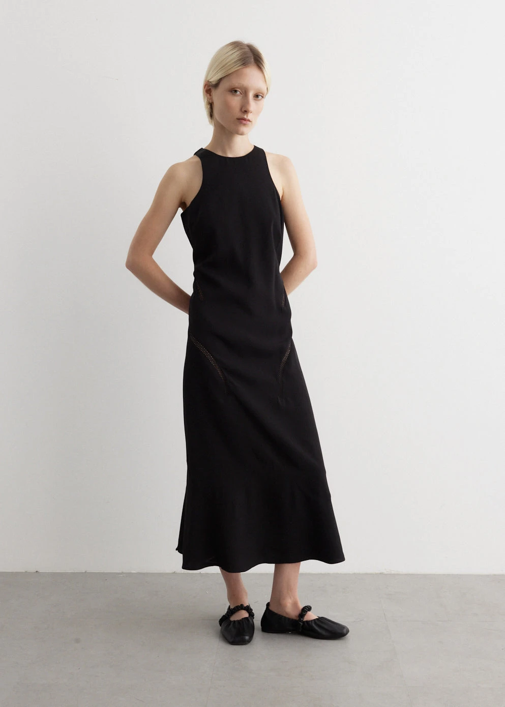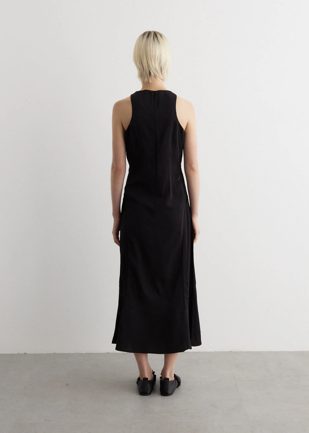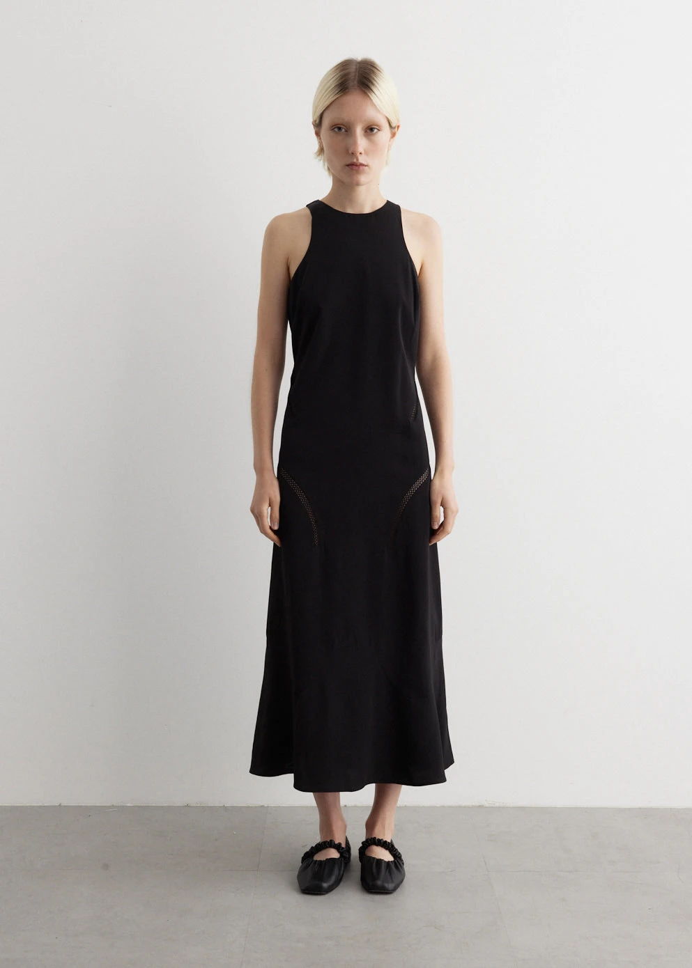 Róhe was birthed out of Amsterdam with particular attention on creating modern, timeless clothing that transcends seasons. Crafted from a fluid viscose blend fabric, the Sleeveless Racer Neckline Dress is cut to an relaxed, A-line silhouette. It features a racer neckline and lace detailing panels for a chic look.