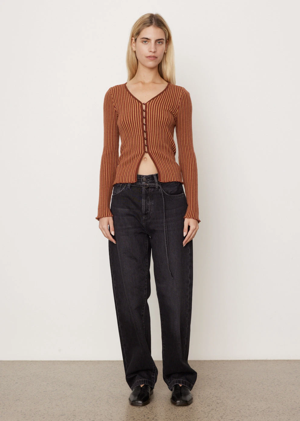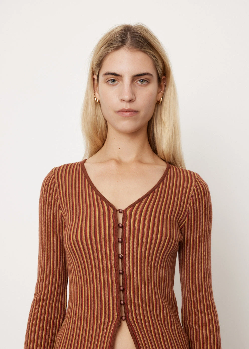 Incu Collection draws inspiration from ’90s grunge, minimalist architecture and fashion and the works of artists such as Amrita Sher-Gil and Tagore. This range exudes a sense of authenticity in staple pieces, offering utility elements and unique variation in its textures and colour palette. Crafted from a cotton-cashmere blend fabric, the Speed Multi Stripe Cardigan is adorned with a multicoloured striped pattern and is distinct with its open button closure with a complementing open-hem.
