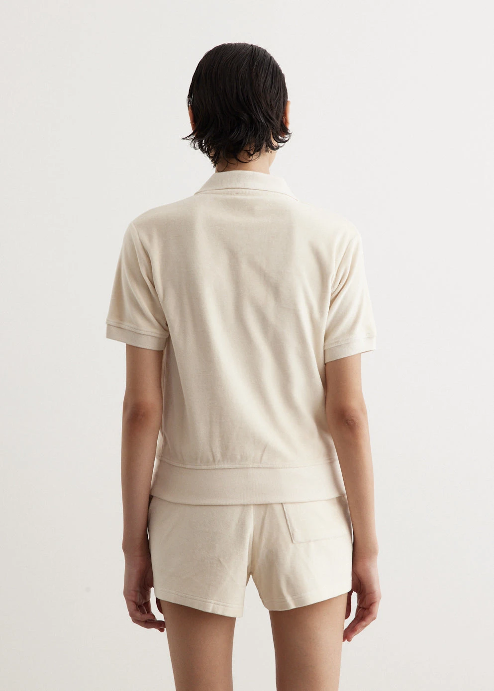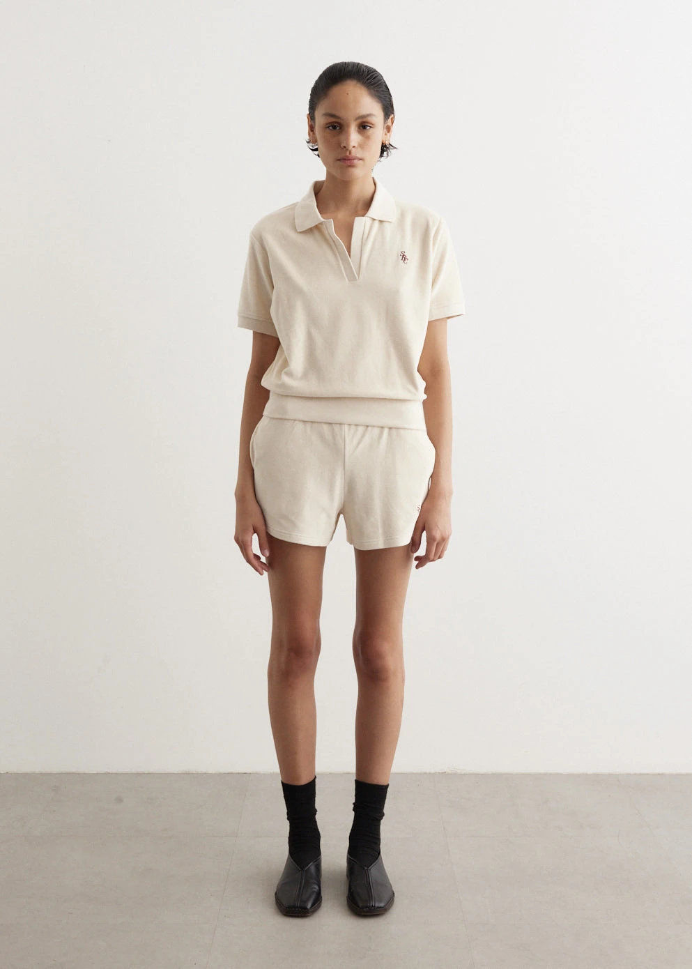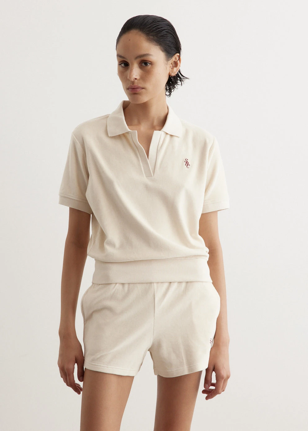 All about health and wellness, Sporty & Rich is the Los Angeles-based label that prides itself on sustainability, quality and a distinct ’90s-inspired sports aesthetic. The SRC Velvet Short Sleeve Polo is a timeless polo design, detailed with an embroidered logo on the chest.Â