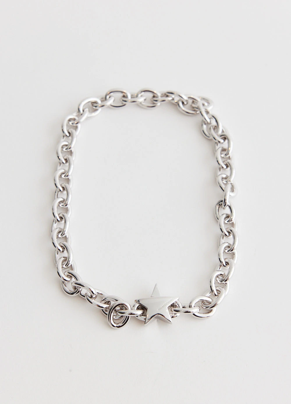 Cult Korean jewellery brand Numbering draws on the bizarre and beautiful, with the contradiction of the extraordinary and the ordinary. Crafted in sterling silver, the Star Clasp Oval Chain Choker offers a chain link design. Adorned with the brands 3D star logo as a clasp closure.