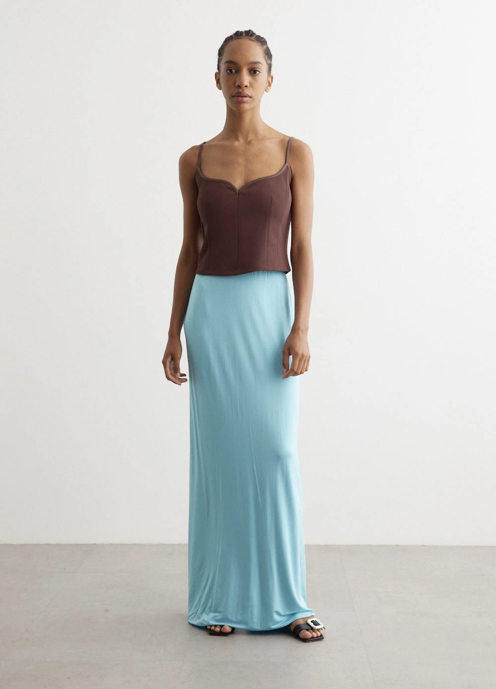 Launched in 2015, New Zealand-based label Paris Georgia brings a unique combination of clean lines, luxurious fabrics, and subtle hues to its offerings of timeless ready-to-wear pieces celebrating the beauty of the female form. The Straight Line Skirt offers a timeless look, featuring a low-rise style that seamlessly extends to the floor, adding a touch of sophistication to any outfit.